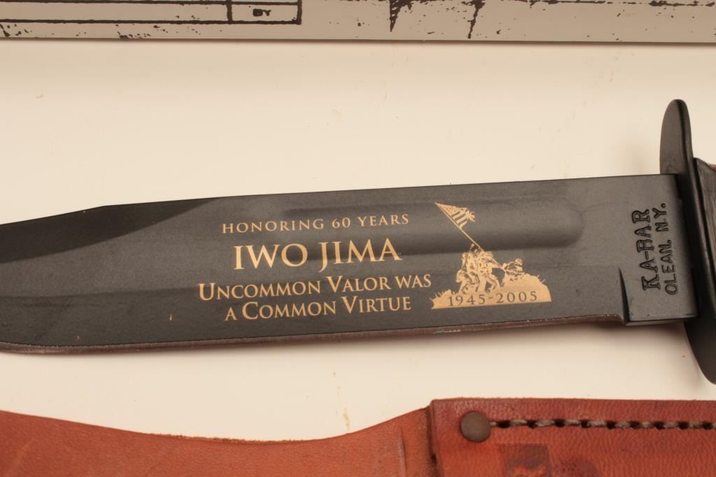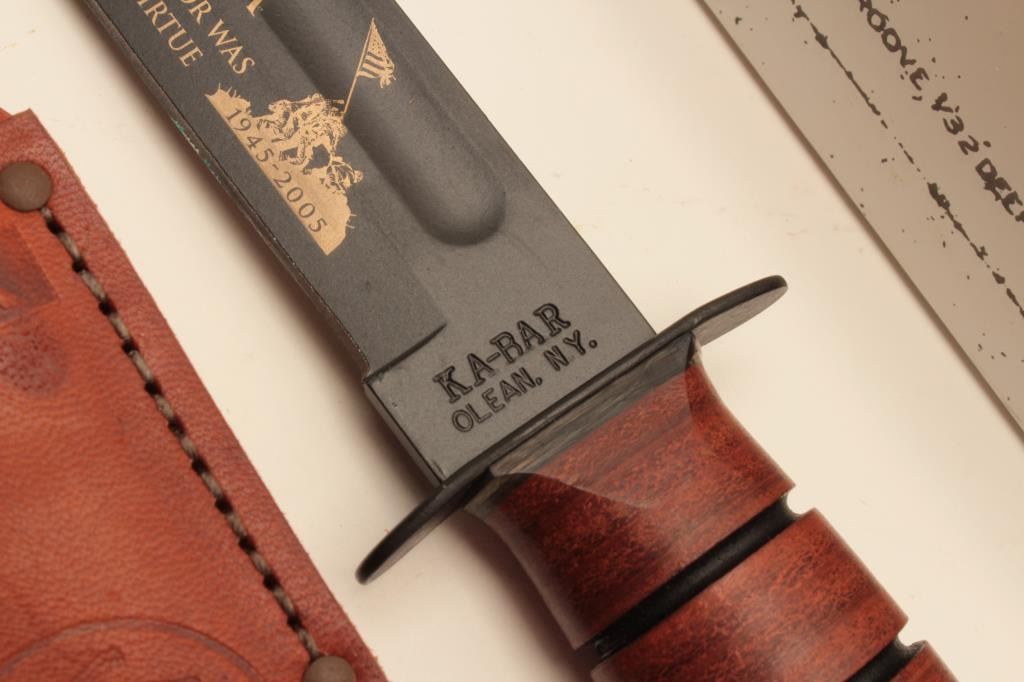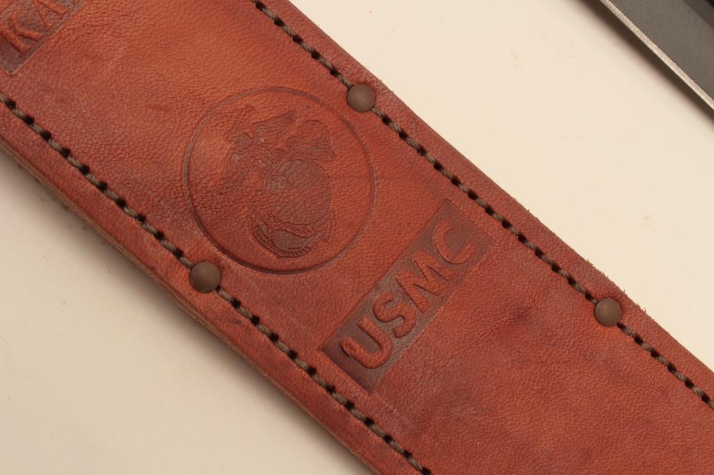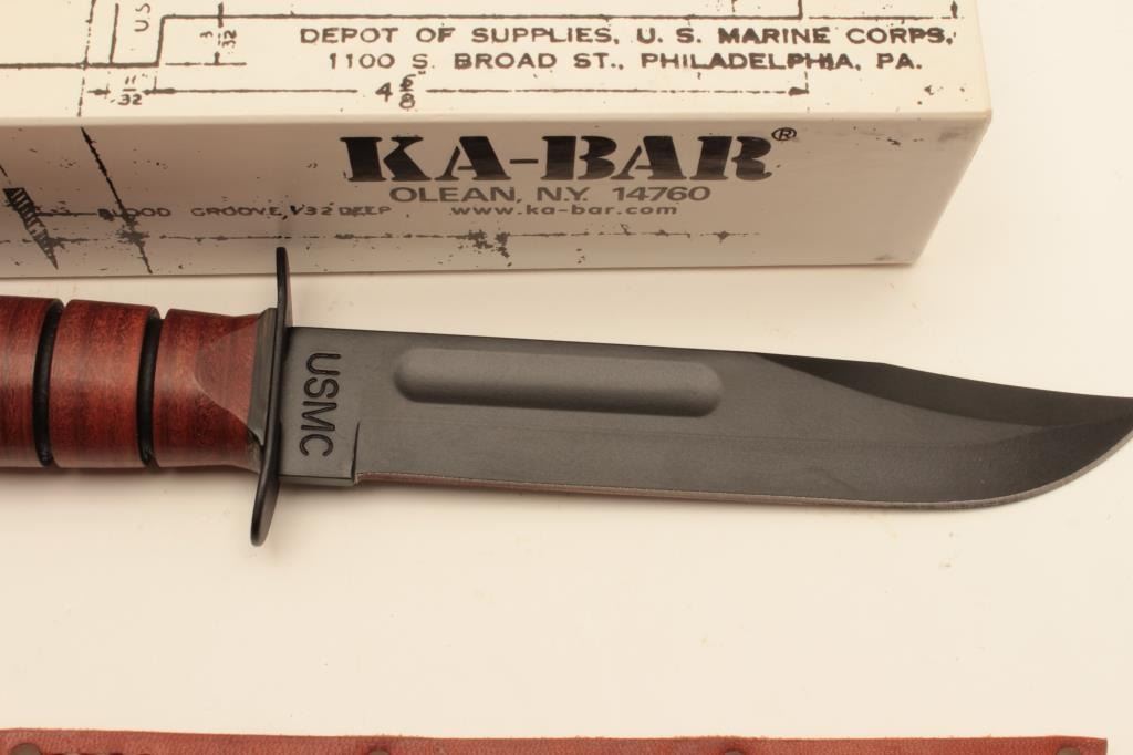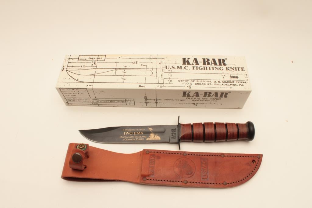 18AG-2 KABAR FIGHTING KNIFEU.S.M.C. KA-BAR Fighting Knife, new in the box with leather scabbard. The knife appears unused with all associated packing material and documentation. The leather scabbard is marked, KA-BAR and USMC and is in excellentcondition. The lot includes the original factory box which is also in very good condition. Est.: $100-$200.U.S.M.C. KA-BAR Fighting Knife, new in the box with leather scabbard. The knife appears unused with all associated packing material and documentation. The leather scabbard is marked, KA-BAR and USMC and is in excellentcondition. The lot includes the original factory box which is also in very good condition. Est.: $100-$200.