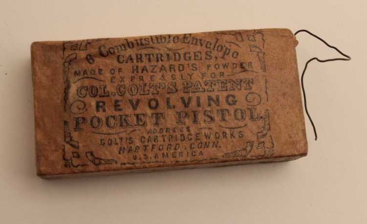 18AN-13 SKIN CARTRIDGES6 Shot Pocket .31 caliber (Hazard’s Powder) Colt Cart. Works. Skin cartridges. Almost fine unopened. Est.: $300-$6006 Shot Pocket .31 caliber (Hazard’s Powder) Colt Cart. Works. Skin cartridges. Almost fine unopened. Est.: $300-$600
