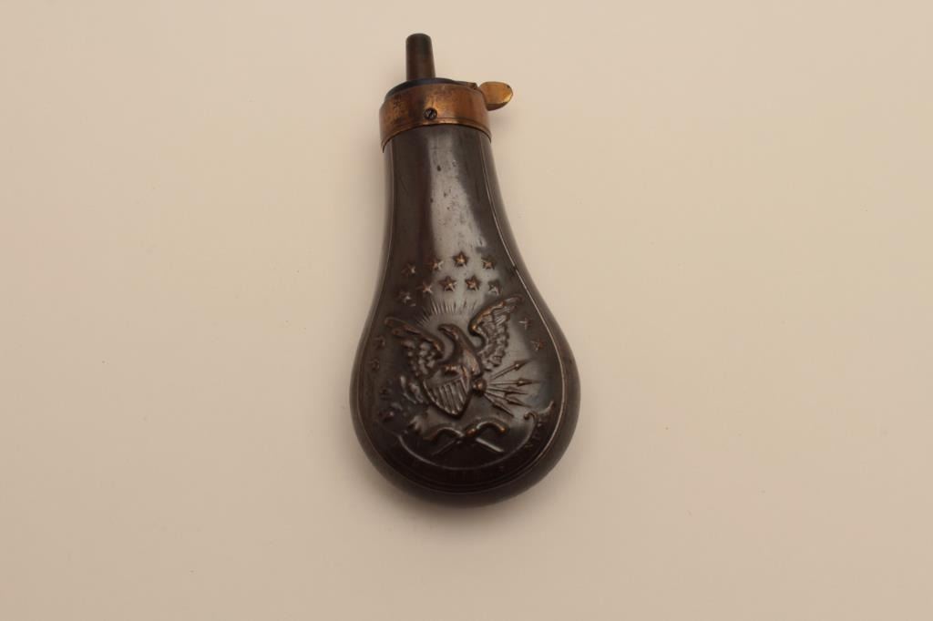 18AN-19 COLT 1849 POCKET FLASKColt 1849 Pocket flask with “E. Pluribus Unum” marking. 80%-90% original lacquer. Bright blue on the spring. One severe dent. Best side is excellent for casing. Est.: $300-$600Colt 1849 Pocket flask with “E. Pluribus Unum” marking. 80%-90% original lacquer. Bright blue on the spring. One severe dent. Best side is excellent for casing. Est.: $300-$600