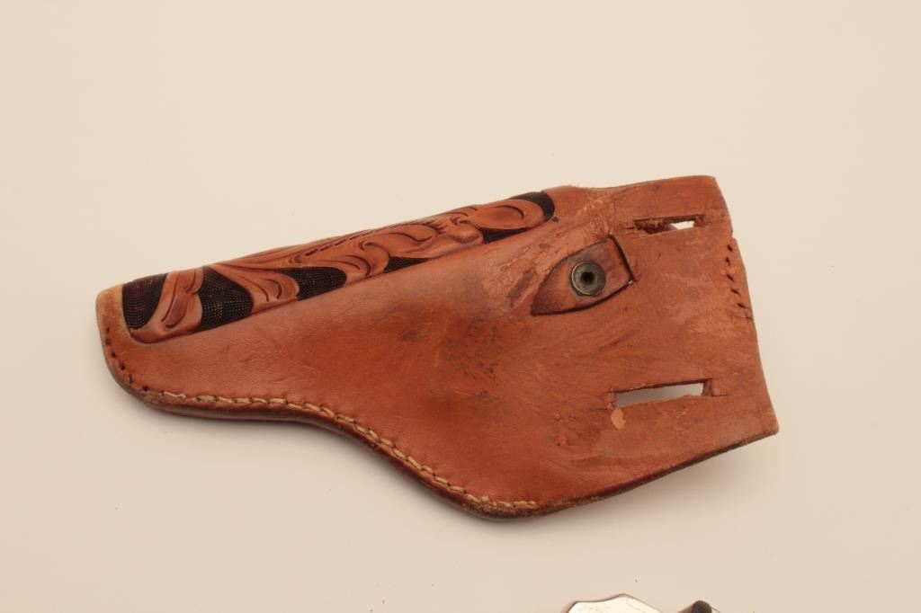 18AN-3 FOREHAND & WADSWORTHForehand & Wadsworth 1901 hammerless with carved holster in very good condition. Gifted by Mrs. Zane Gray and property of her husband who was a famous western author who lived in Newport Beach, California. Letterincluded. (C&R/No PPT) Est.: $1000-$2000Forehand & Wadsworth 1901 hammerless with carved holster in very good condition. Gifted by Mrs. Zane Gray and property of her husband who was a famous western author who lived in Newport Beach, California. Letterincluded. (C&R/No PPT) Est.: $1000-$2000