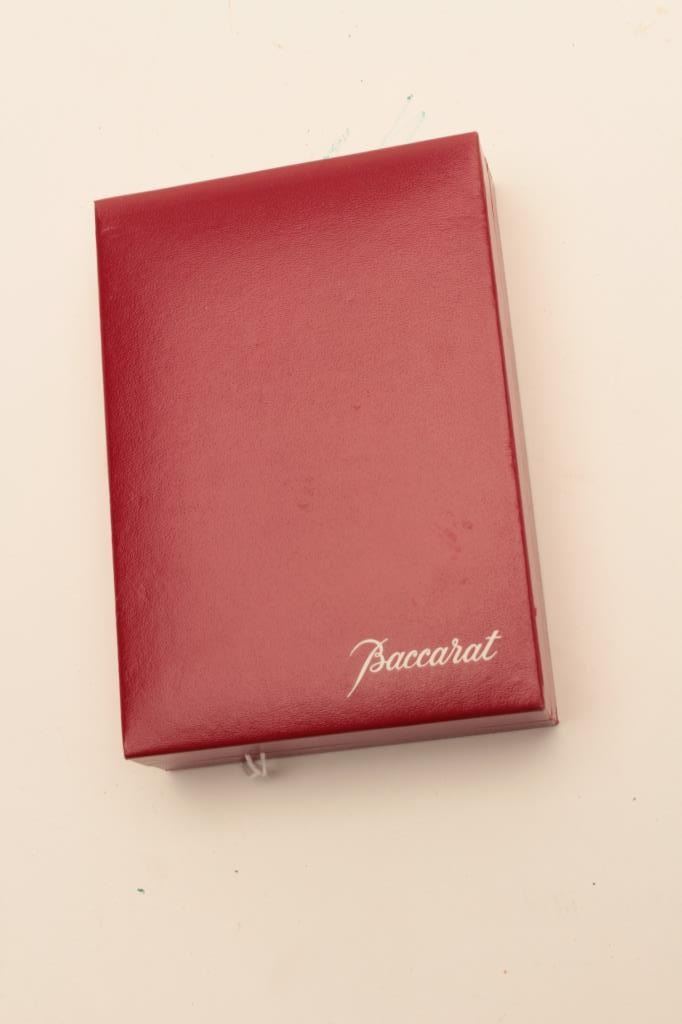 18AO-11 BACCARAT EGG NECKLACEBaccarat crystal egg necklace in original red Baccarat box. The necklace features a beautiful crystal egg on a silver tone round chain. The necklace is in the factory box with associated packaging material. A nicepiece from a local estate. Est.: $150-$300.Baccarat crystal egg necklace in original red Baccarat box. The necklace features a beautiful crystal egg on a silver tone round chain. The necklace is in the factory box with associated packaging material. A nicepiece from a local estate. Est.: $150-$300.