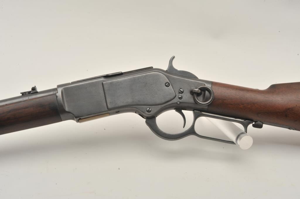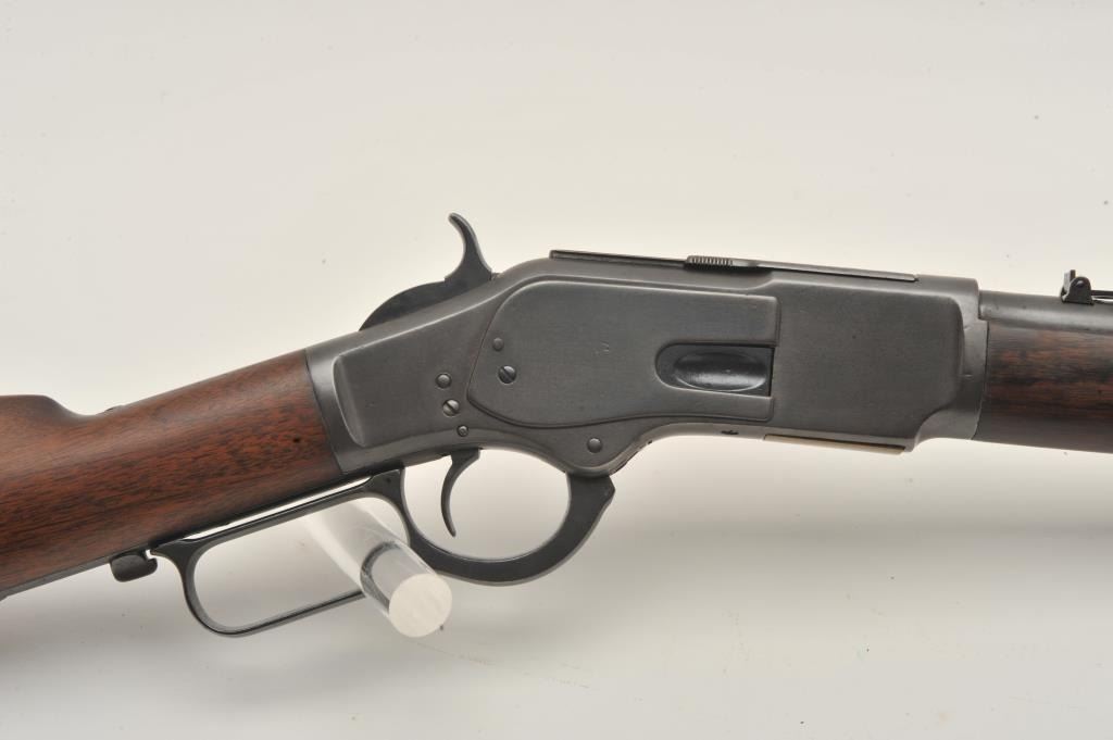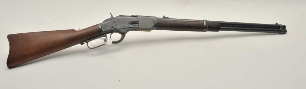 18AP-35 WINCHESTER 73Winchester Model 1873 SRC, .44 W.C.F. caliber, 20” barrel, wood stocks, S/N 38444, in overall good condition as re-blued and restored; good action, bore shows some scattered light pitting, good wood stocks. (Antique). Est.: $800-$1,600.Winchester Model 1873 SRC, .44 W.C.F. caliber, 20” barrel, wood stocks, S/N 38444, in overall good condition as re-blued and restored; good action, bore shows some scattered light pitting, good wood stocks. (Antique). Est.: $800-$1,600.