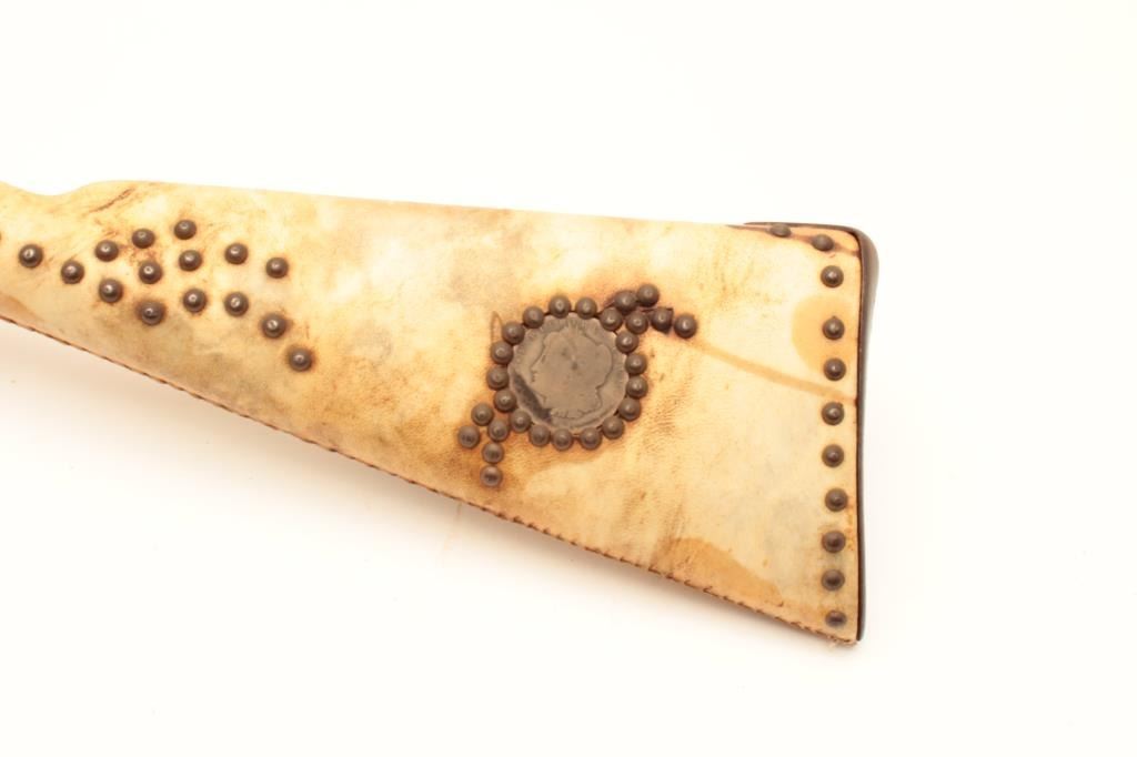 18AP-38 TACKED SHOTGUNIndian-style tacked and wrapped percussion SxS exposed hammers shotgun. (Antique). Est.: $200-$400.Indian-style tacked and wrapped percussion SxS exposed hammers shotgun. (Antique). Est.: $200-$400.