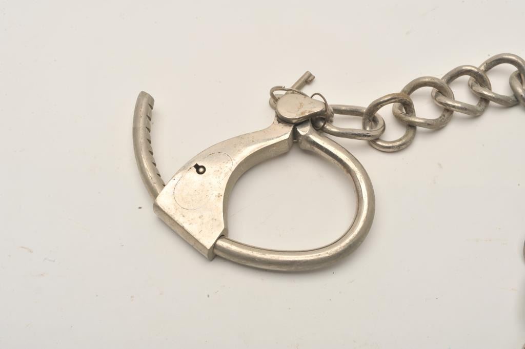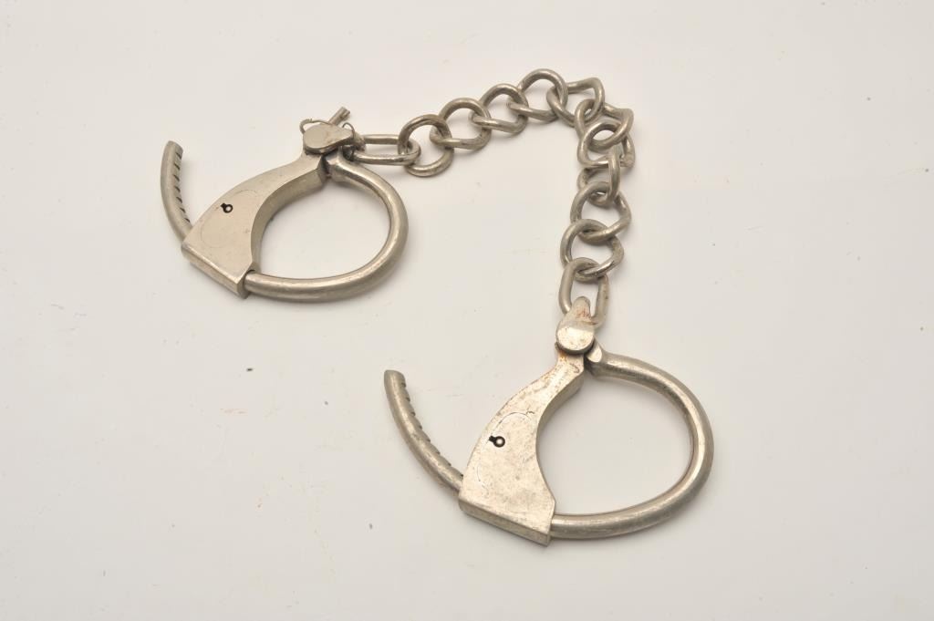 18AP-80 LEG IRONSTower Double Lock leg irons. The lot includes one set of stainless, Tower marked leg irons. The leg irons are approximately 20” in length with a medium heavy connecting chain in good overall condition with keyincluded. Est.: $125-$250.Tower Double Lock leg irons. The lot includes one set of stainless, Tower marked leg irons. The leg irons are approximately 20” in length with a medium heavy connecting chain in good overall condition with keyincluded. Est.: $125-$250.