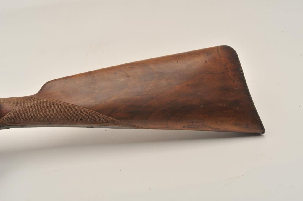 18AR-54 FRENCH CARBINEFrench percussion military style carbine circa late 1850’s to 60’s with flared iron barrel of almost blunderbuss size. Measures 37” overall with 21”barrel that measures 9 across in walls of barrel or .90 plus caliber .90 plus caliber! Shows sights on the barrel. Cleaned metal and wood with sharpened checkering. Brass tipped ramrod is included. Recognized French dealer stated several like this found in Egypt in the 50’s. (Antique)Est.: $500-$1000French percussion military style carbine circa late 1850’s to 60’s with flared iron barrel of almost blunderbuss size. Measures 37” overall with 21”barrel that measures 9 across in walls of barrel or .90 plus caliber .90 plus caliber! Shows sights on the barrel. Cleaned metal and wood with sharpened checkering. Brass tipped ramrod is included. Recognized French dealer stated several like this found in Egypt in the 50’s. (Antique)Est.: $500-$1000