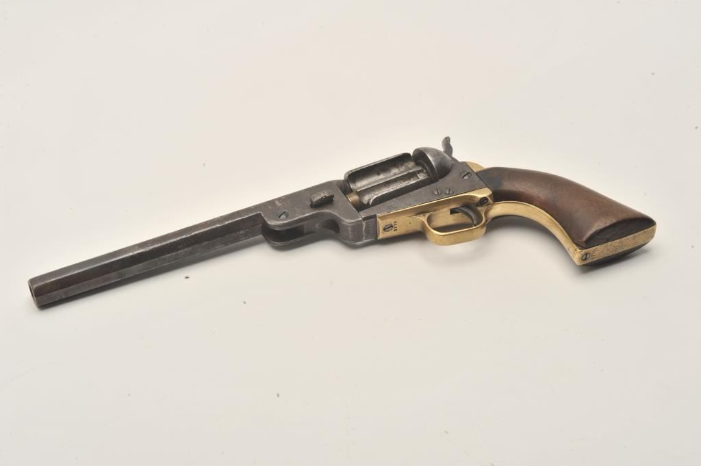18ASS-5Interesting oddball, period conversion modification to a Colt Model 1851 Navy revolver where the cylinder has had four chambers opened with the remaining two set up with firing pins; the opened cylinders allow for the loading of a cartridge into the rear of the barrel assembly for firing; good action, good grips, mixed S/Ns; a real piece of frontier workmanship. Est.: $900-$1,800.Interesting oddball, period conversion modification to a Colt Model 1851 Navy revolver where the cylinder has had four chambers opened with the remaining two set up with firing pins; the opened cylinders allow for the loading of a cartridge into the rear of the barrel assembly for firing; good action, good grips, mixed S/Ns; a real piece of frontier workmanship. Est.: $900-$1,800.