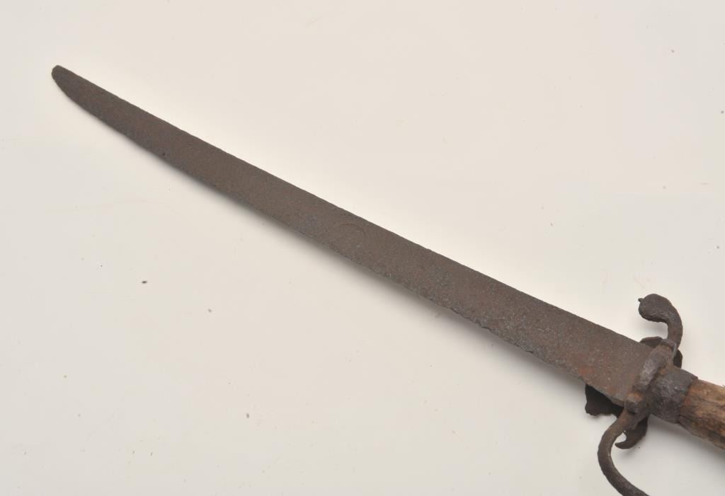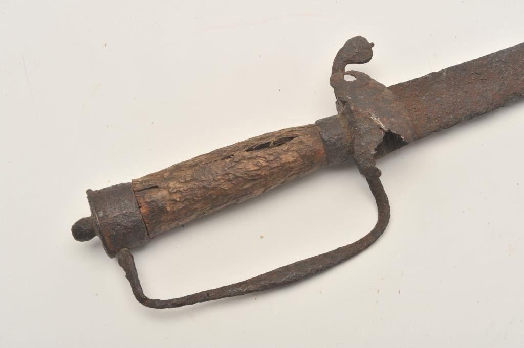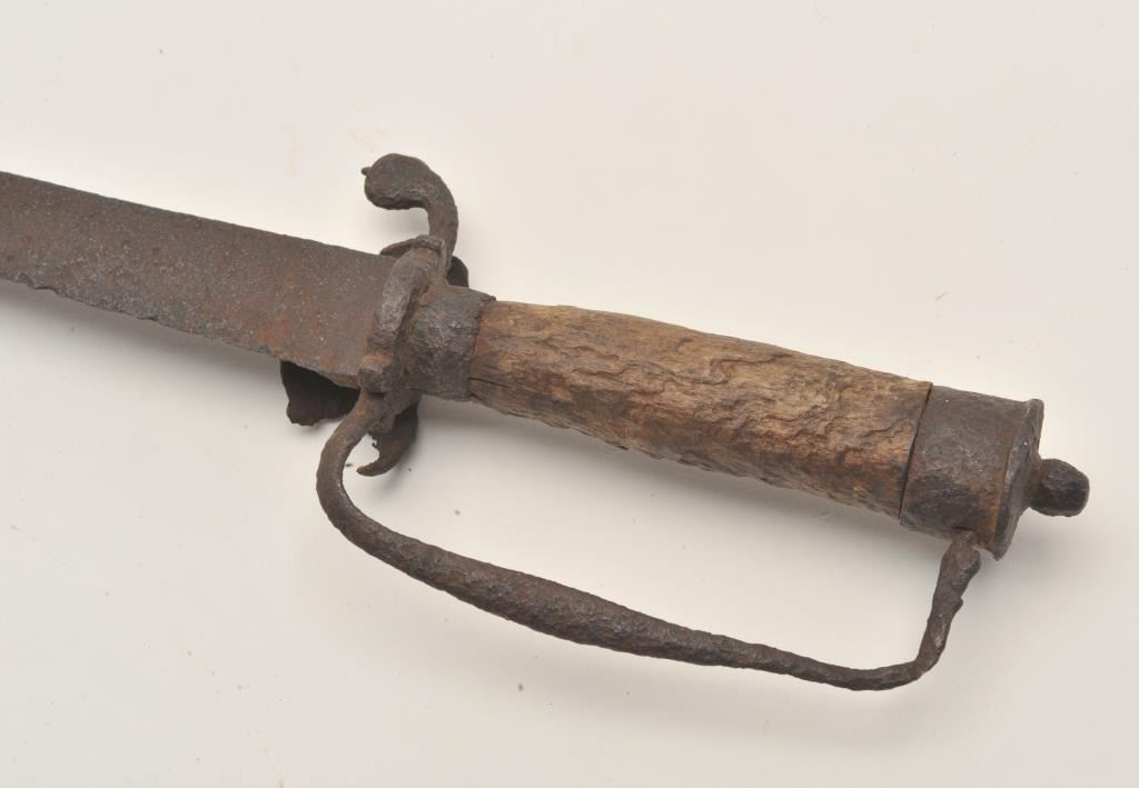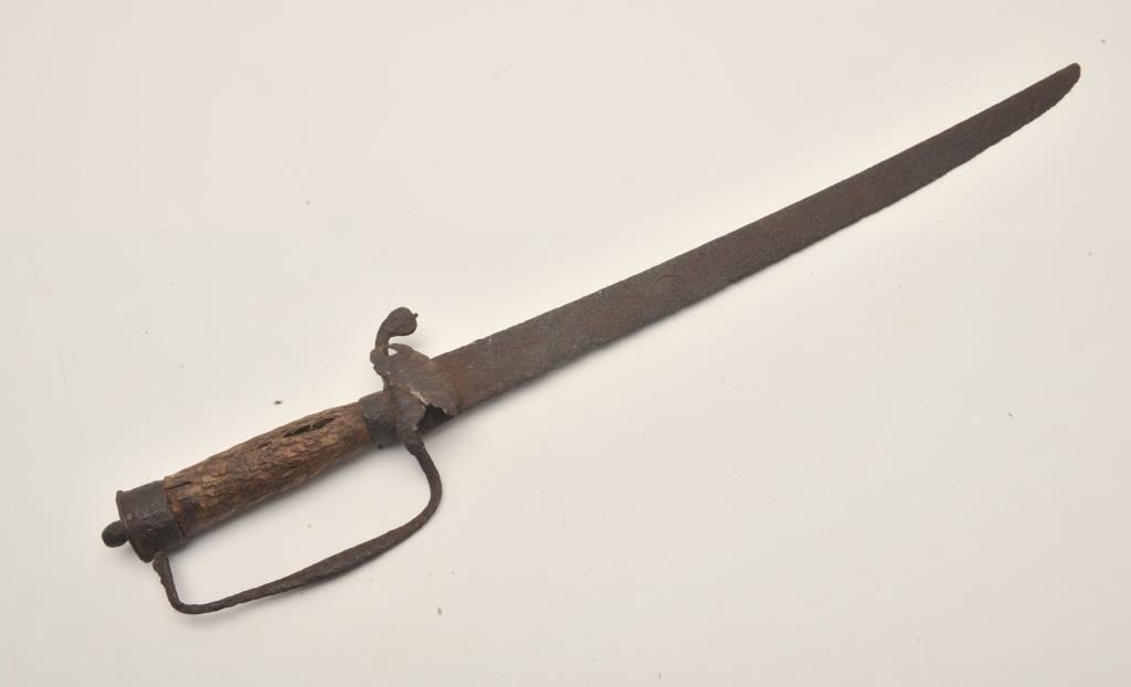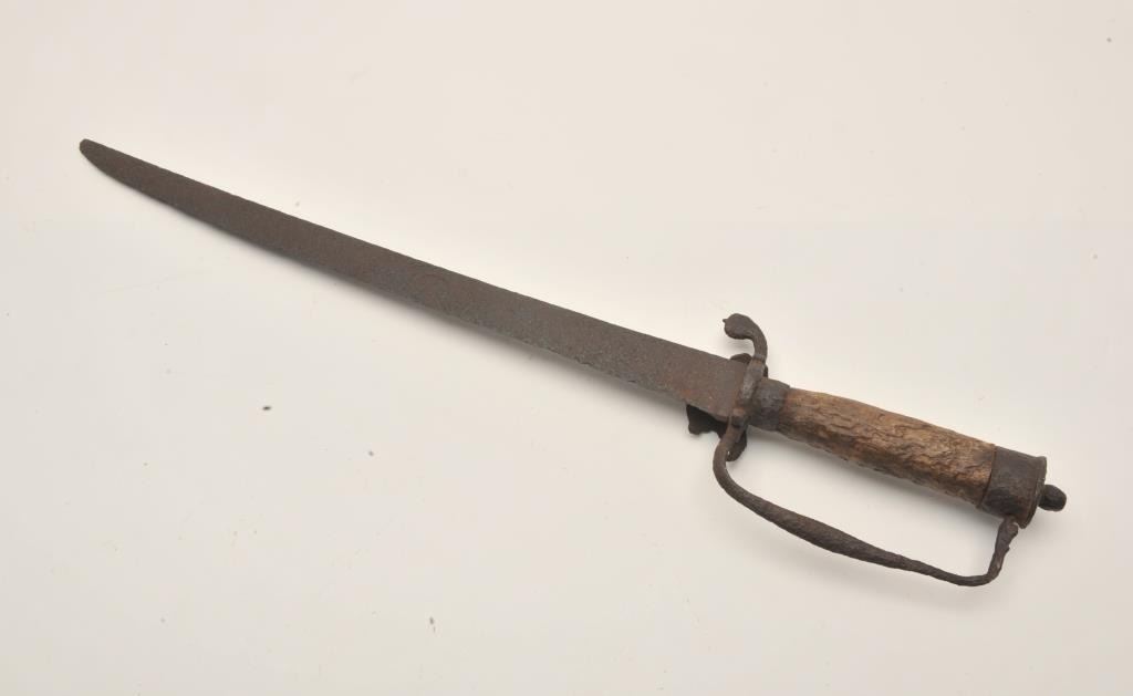 18ASS-9 RELIC HANGERRelic hanger short sword (ca. 1580-1600), approximately 20” overall with a 15” blade; Eastern Pennsylvania find. Est.: $150-$300.Relic hanger short sword (ca. 1580-1600), approximately 20” overall with a 15” blade; Eastern Pennsylvania find. Est.: $150-$300.