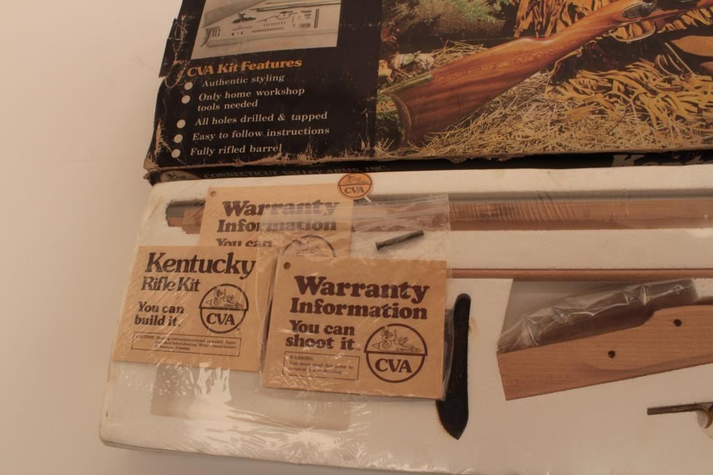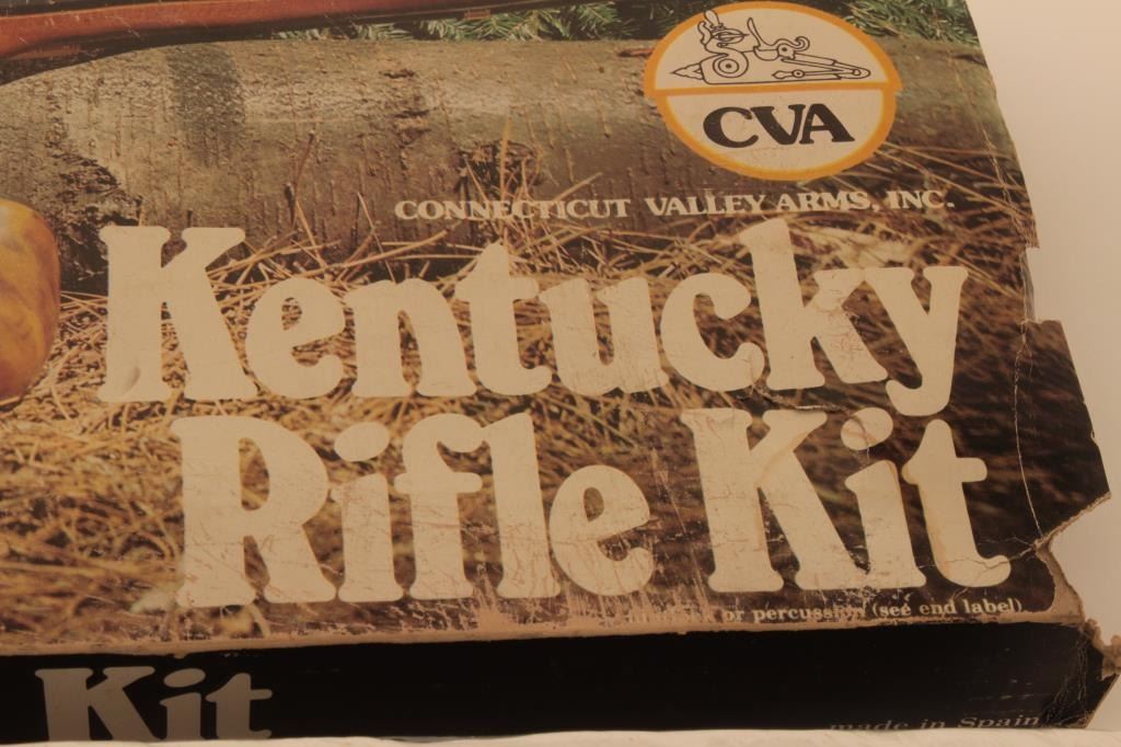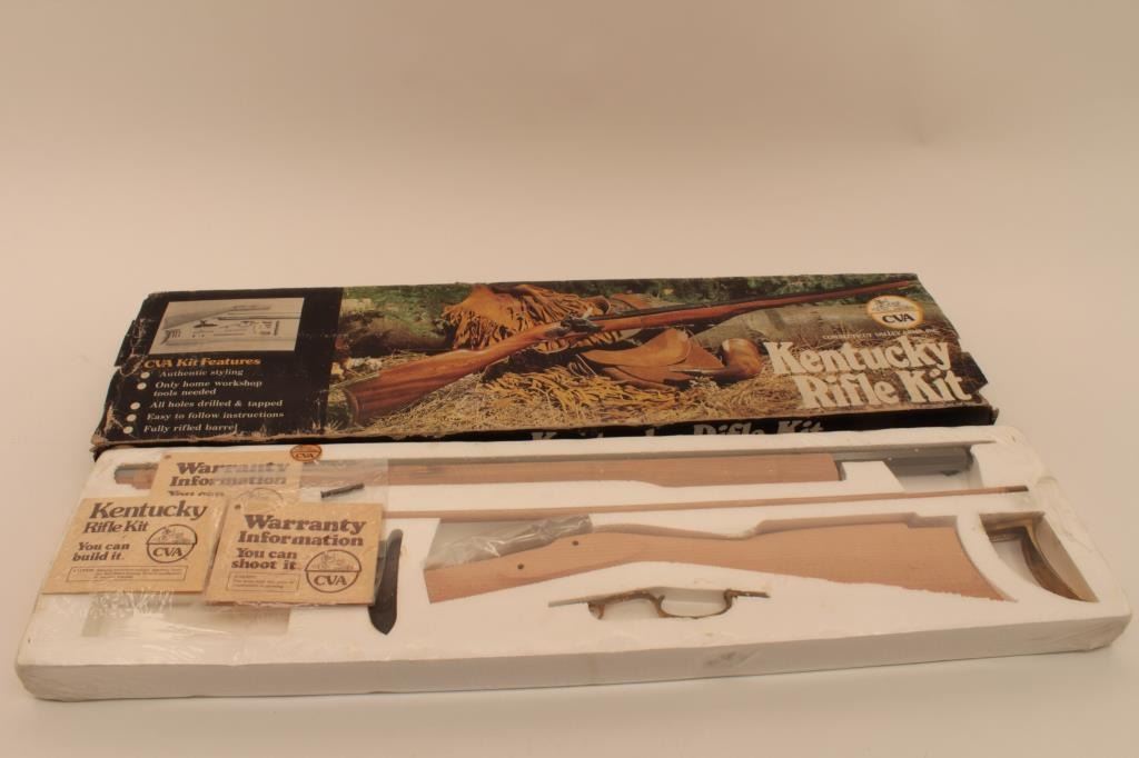 18BB-2 CVA KENTUCKY RIFLE KITCVA Kentucky percussion rifle kit still sealed, new in the box. The .45 rifle kit includes everything needed to build a Kentucky rifle noting only home work shop tools are needed to complete the project.The cardboard sleeve is somewhat tattered but the rifle parts remain sealed and untouched. The box indicates the rifle kit was manufactured in Spain. Est.: $150-$300.CVA Kentucky percussion rifle kit still sealed, new in the box. The .45 rifle kit includes everything needed to build a Kentucky rifle noting only home work shop tools are needed to complete the project.The cardboard sleeve is somewhat tattered but the rifle parts remain sealed and untouched. The box indicates the rifle kit was manufactured in Spain. Est.: $150-$300.