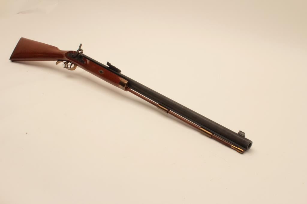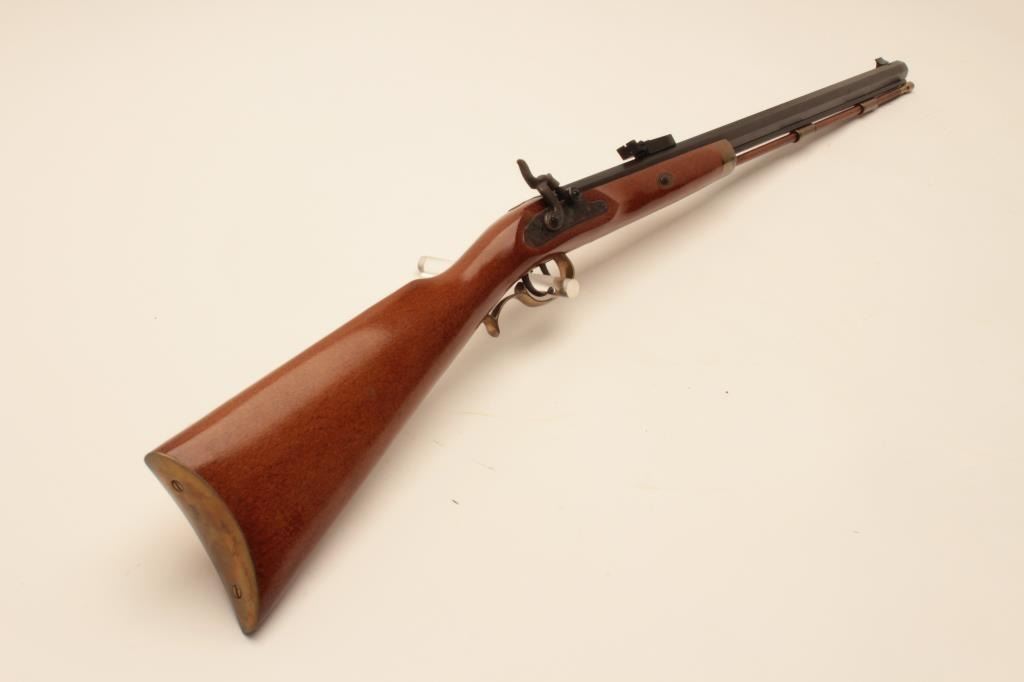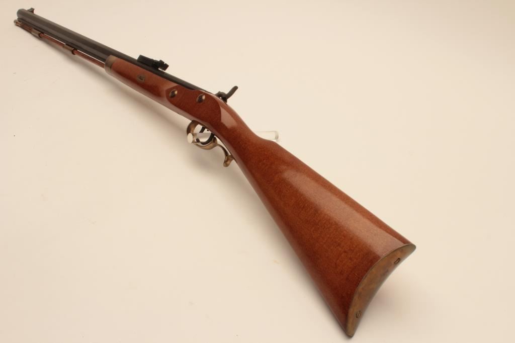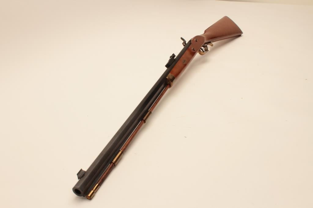 18BJ-3 REPRO PLAINS RIFLE #562734Spanish made modern copy of a half stock percussion plains rifle, .50 caliber black powder, blued and case hardened finish, octagon barrel, double set triggers working at time of description, wood stock, brassmounts, S/N 88 562734, in overall fine condition. (Percussion). Est.: $100-$200.Spanish made modern copy of a half stock percussion plains rifle, .50 caliber black powder, blued and case hardened finish, octagon barrel, double set triggers working at time of description, wood stock, brassmounts, S/N 88 562734, in overall fine condition. (Percussion). Est.: $100-$200.