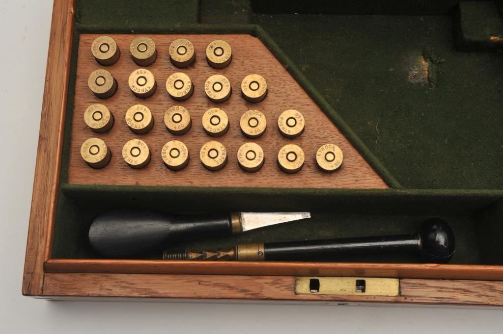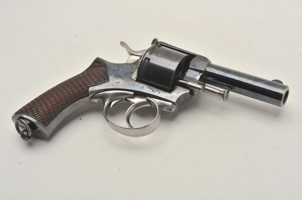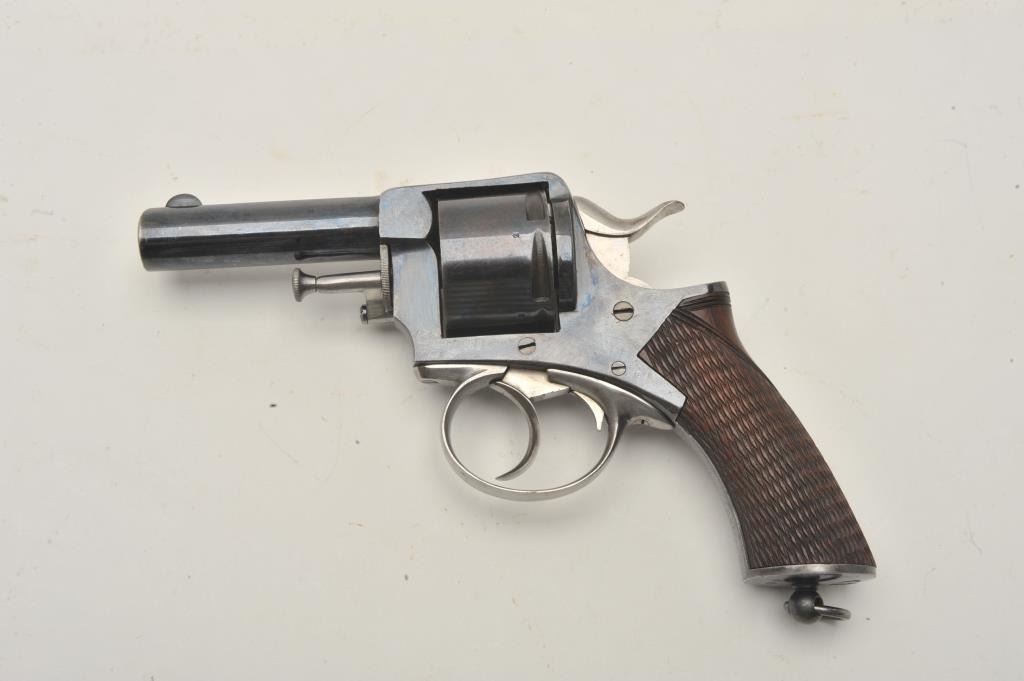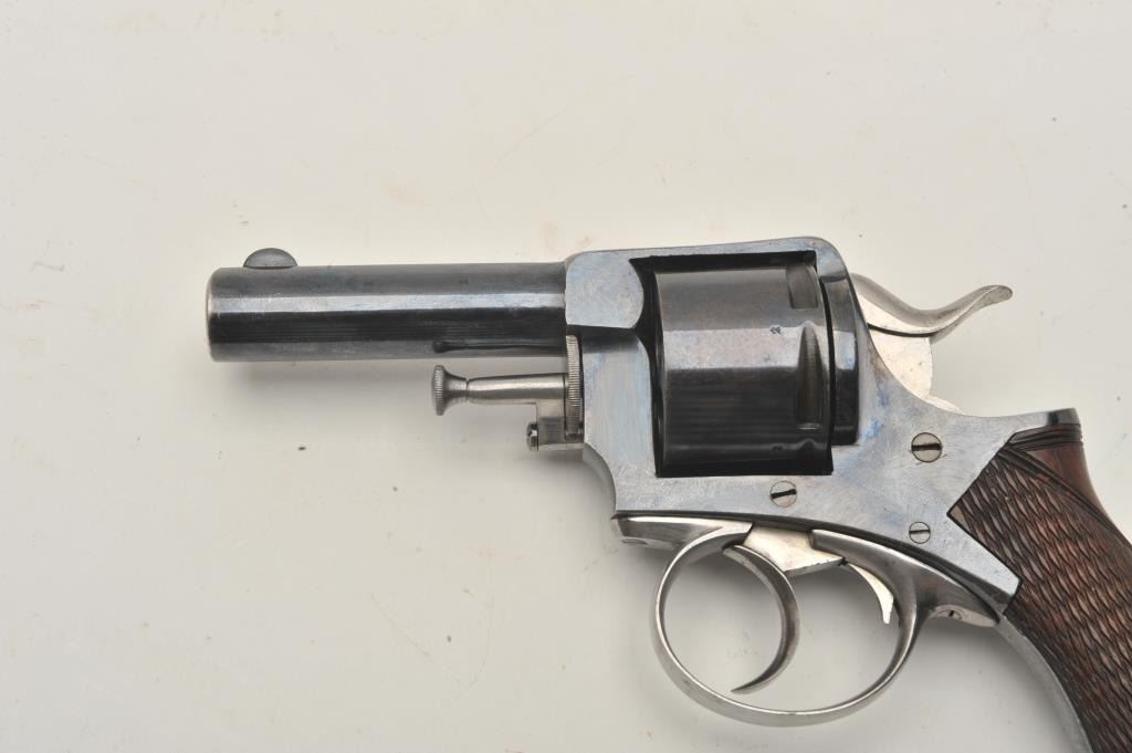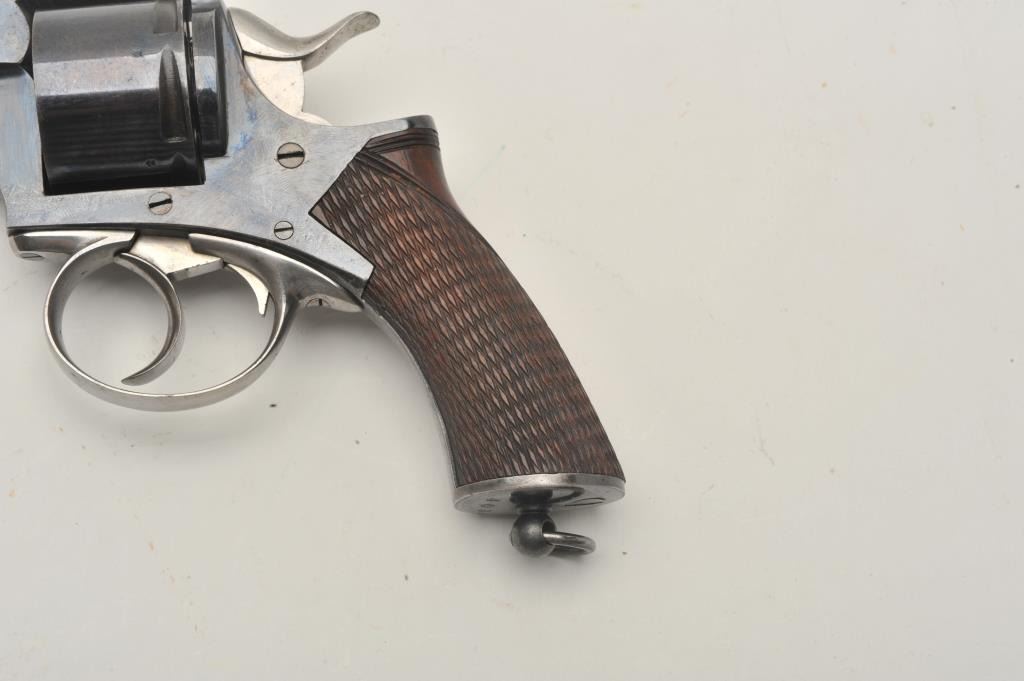 18BL-7 ADAM REVOLVERBeautiful Cased Adams & Co. revolver, .455 caliber, Serial #4032. The pistol is in fine overall condition with a 3 ¼” barrel with a polished rib and blade front sight. The pistol retains the majority of its bluefinish with small mars and loss of finish at the muzzle. The top strap is engraved, “ADAMS & Co., 9 FINSBURY PLACE SOUTH LONDON”. The finely checkered Walnut grips are in very good condition with handling marks,sharp checkering and the lanyard ring retained at the butt. The wooden case is in good overall condition with green felt lining worn in places with a trade label in the lid, cleaning rod, screwdriver and 22 roundsof loaded ammunition in the cartridge holders. Est.: $1,500-$3,000. (Antique).Beautiful Cased Adams & Co. revolver, .455 caliber, Serial #4032. The pistol is in fine overall condition with a 3 ¼” barrel with a polished rib and blade front sight. The pistol retains the majority of its bluefinish with small mars and loss of finish at the muzzle. The top strap is engraved, “ADAMS & Co., 9 FINSBURY PLACE SOUTH LONDON”. The finely checkered Walnut grips are in very good condition with handling marks,sharp checkering and the lanyard ring retained at the butt. The wooden case is in good overall condition with green felt lining worn in places with a trade label in the lid, cleaning rod, screwdriver and 22 roundsof loaded ammunition in the cartridge holders. Est.: $1,500-$3,000. (Antique).