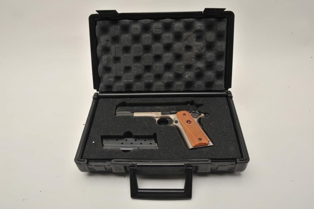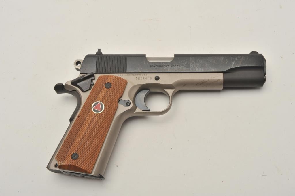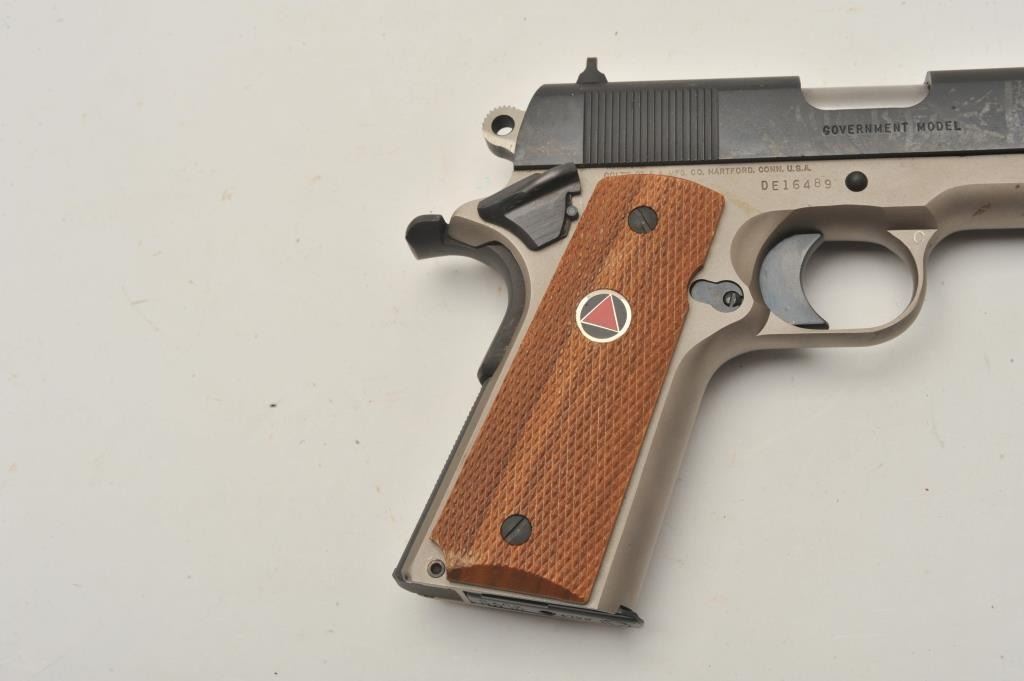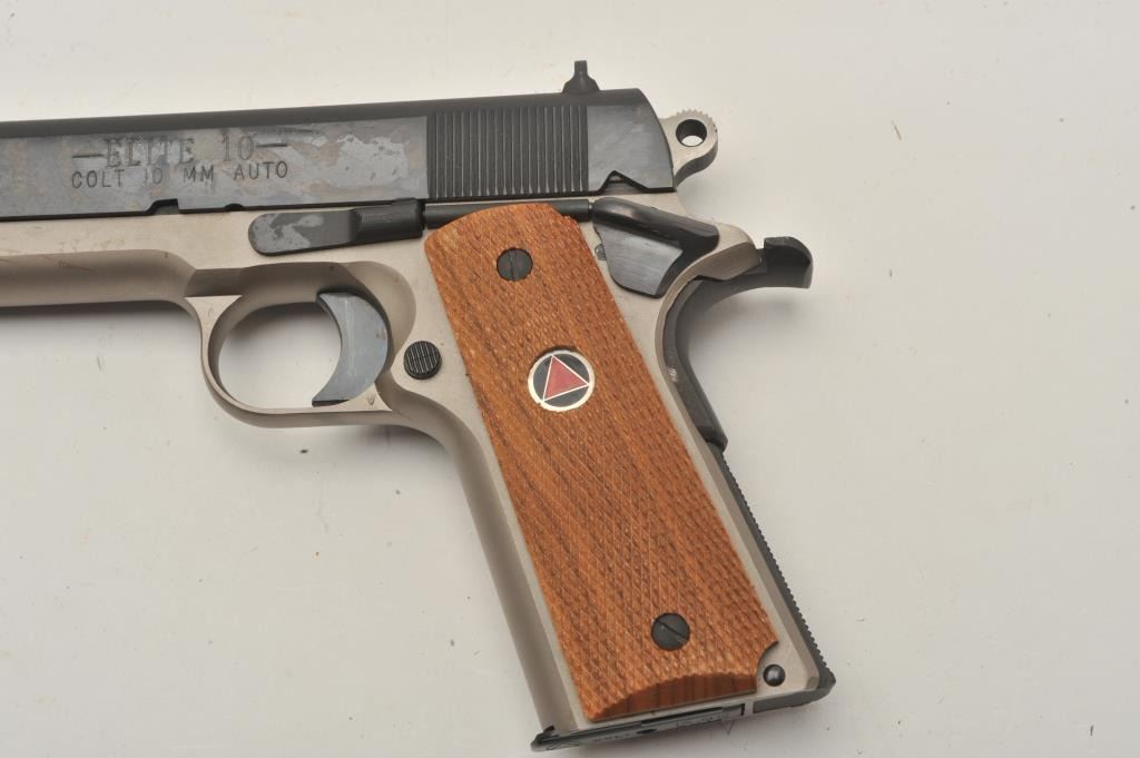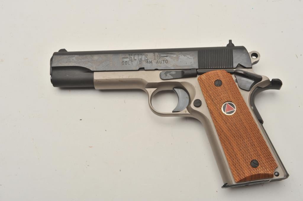 18BM-1 COLT ELITE #DE16489Colt Elite Ten 10 MM, #DE16489, two tone finish, stainless frame with blued slide, 5" barrel, 3 dot drift adjustable sights, commander style hammer, checkered hardwood grips with Delta Elite logo. Pistol is inexcellent condition, as new. Includes factory hard case, manual and 2 correct mags, (Modern / PPT) Est. $800-1600Colt Elite Ten 10 MM, #DE16489, two tone finish, stainless frame with blued slide, 5" barrel, 3 dot drift adjustable sights, commander style hammer, checkered hardwood grips with Delta Elite logo. Pistol is inexcellent condition, as new. Includes factory hard case, manual and 2 correct mags, (Modern / PPT) Est. $800-1600