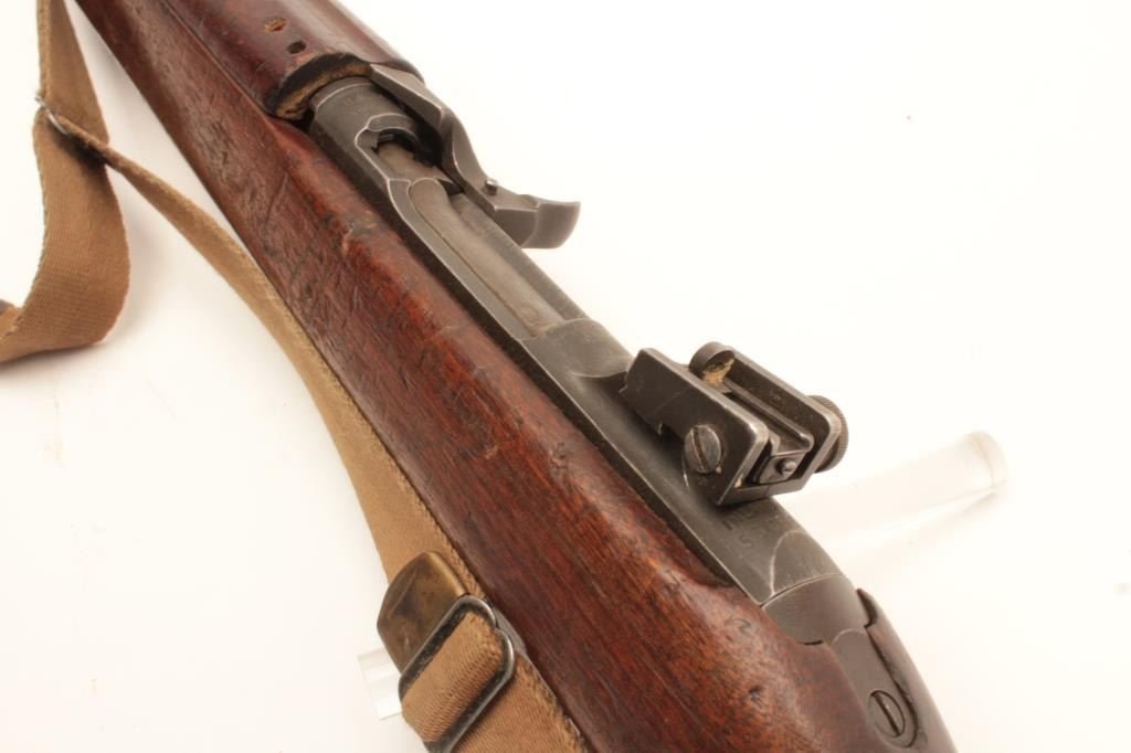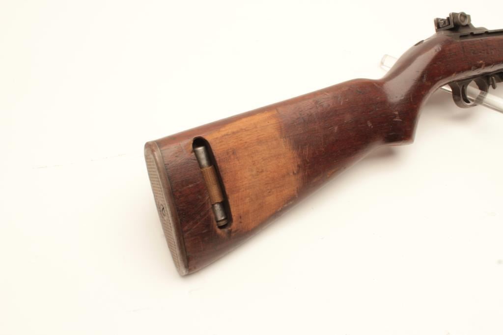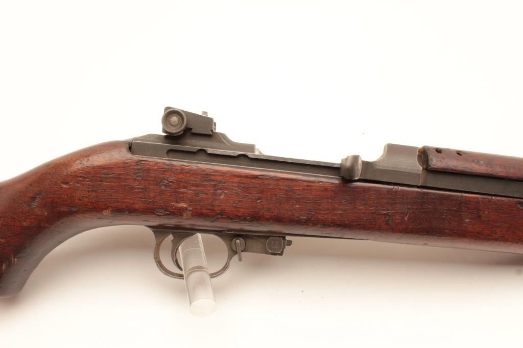 18BM-71 M-1 CARBINEInland Division M1 Carbine, .30 cal, #536357618" Inland barrel dated 7-44, flat bolt, updated for Korea. Rifle is in good to very good condition, bright bore, retaining 60-80% military finish, with some minorcorrosion on the barrel. Stock is good to very good, with an area on the right side sanded where the crossed cannons were. Barrel marked Blue Sky, Includes sling and oiler and one hi cap mag (not transferrableto CA or prohibited states) (C&R) Est. $600-1200Inland Division M1 Carbine, .30 cal, #536357618" Inland barrel dated 7-44, flat bolt, updated for Korea. Rifle is in good to very good condition, bright bore, retaining 60-80% military finish, with some minorcorrosion on the barrel. Stock is good to very good, with an area on the right side sanded where the crossed cannons were. Barrel marked Blue Sky, Includes sling and oiler and one hi cap mag (not transferrableto CA or prohibited states) (C&R) Est. $600-1200