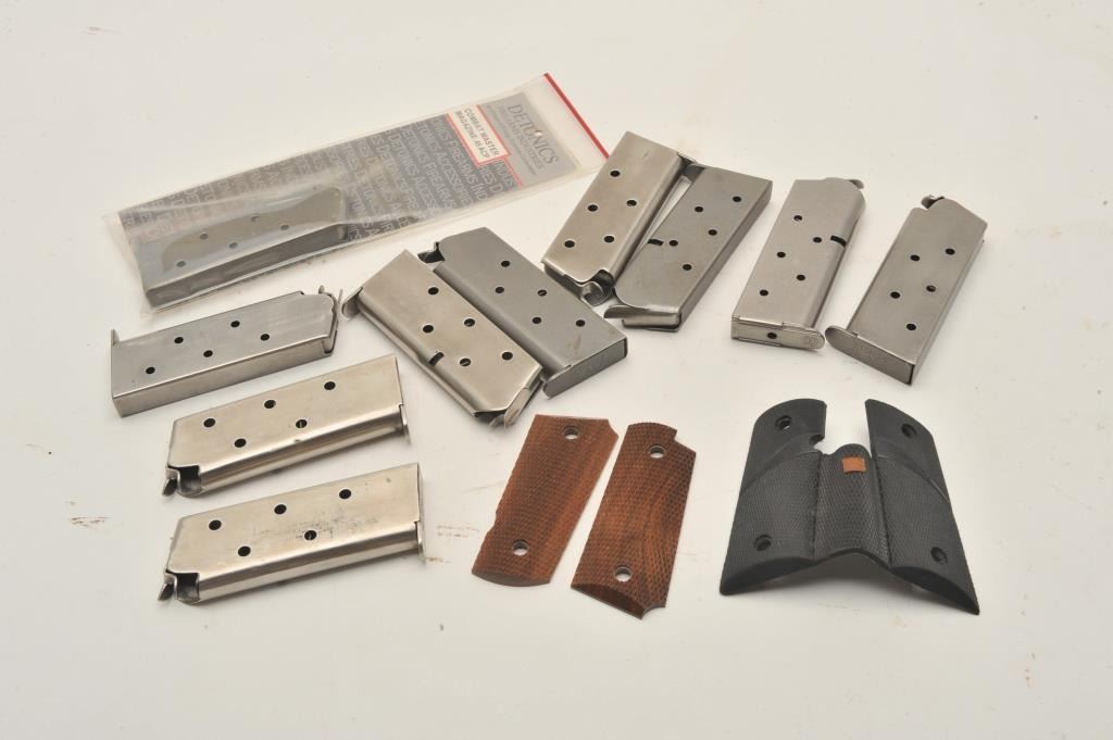 18BM-74 DETONIC CLIPS11 Detonics magazines with a couple of manuels and 2 pairs of grips. Est.: $200-$40011 Detonics magazines with a couple of manuels and 2 pairs of grips. Est.: $200-$400