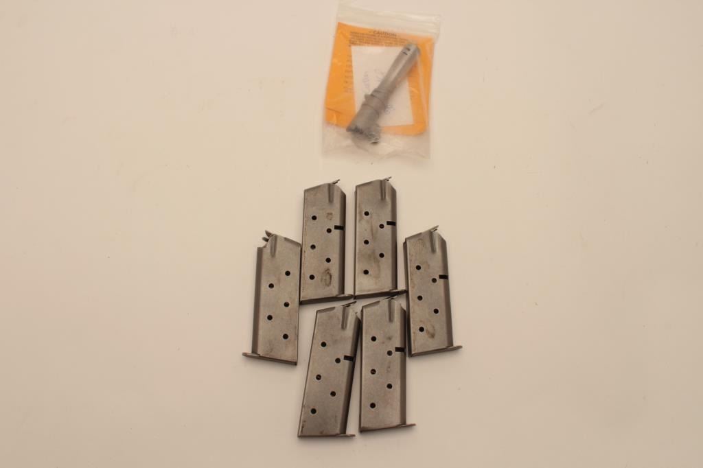 18BM-77 DETONICS CLIPSLot of 6 9MM Detonics magazines and a 400 carbon barrel. Est.: $100-$200Lot of 6 9MM Detonics magazines and a 400 carbon barrel. Est.: $100-$200