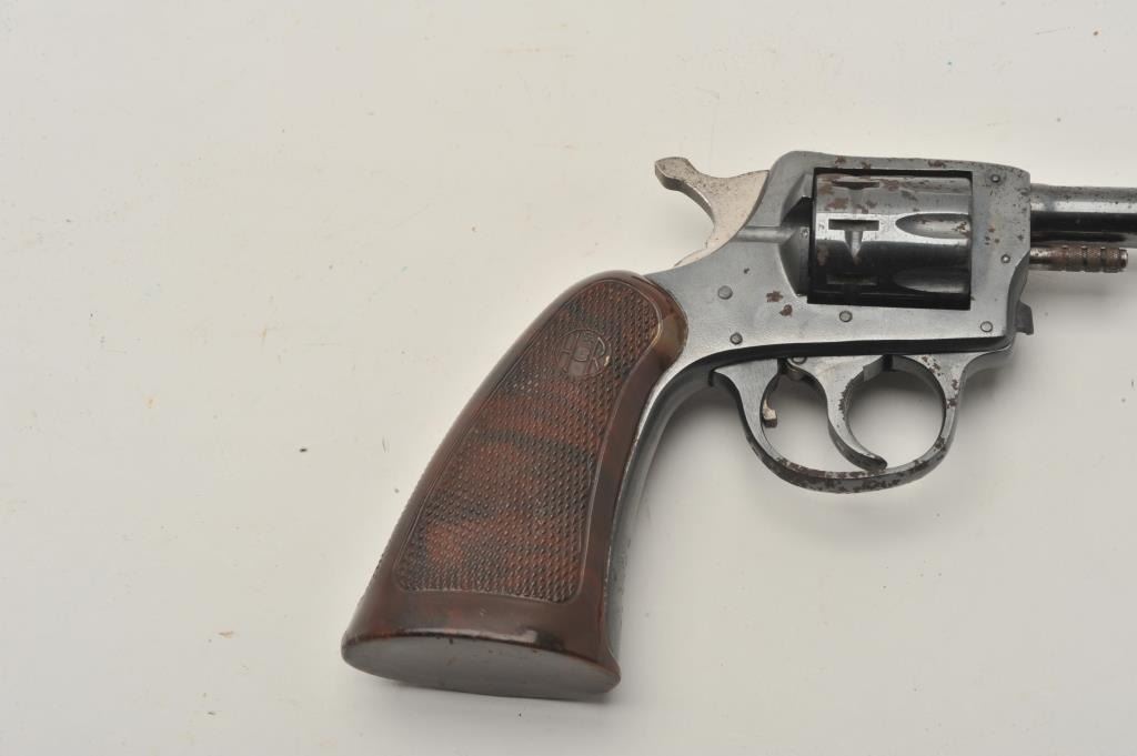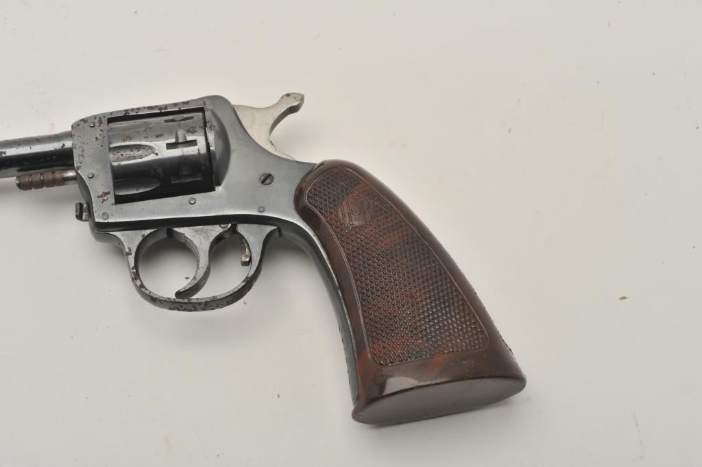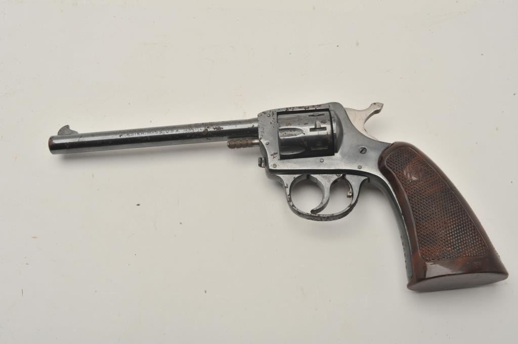 18CA-306 H&R 922 DAH&R 922 Double Action 9 shot revolver in .22 caliber with a 6” barrel, S/N L30213. The action and bore are excellent. Rust and pitting from poor storage. Excellent grips. Made in 1951. May clean well. (C&R/No PPT)Est.: $100-$200H&R 922 Double Action 9 shot revolver in .22 caliber with a 6” barrel, S/N L30213. The action and bore are excellent. Rust and pitting from poor storage. Excellent grips. Made in 1951. May clean well. (C&R/No PPT)Est.: $100-$200