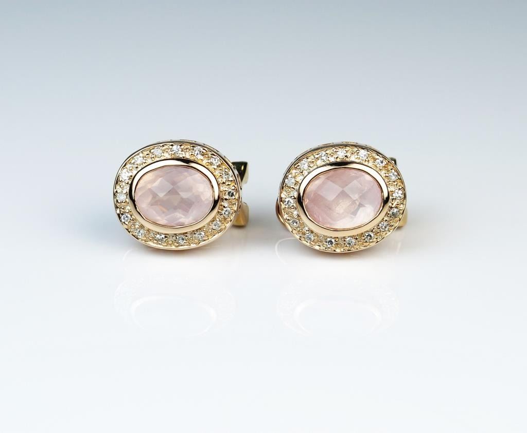18CAI-26 ROSE QUARTZ & DIAMOND EARRINGSFinely crafted earrings set with two matching pink Rose Quar