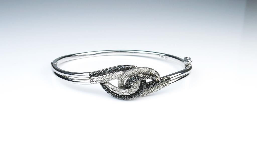 18CAI-54 BANGLE BRACELETStylish designer looking bangle bracelet set with over 80 black and white Diamonds weighing approx. 1.00 carat set in Sterling silver. Nice Estimates $400-$600Stylish designer looking bangle bracelet set with over 80 black and white Diamonds weighing approx. 1.00 carat set in Sterling silver. Nice Estimates $400-$600