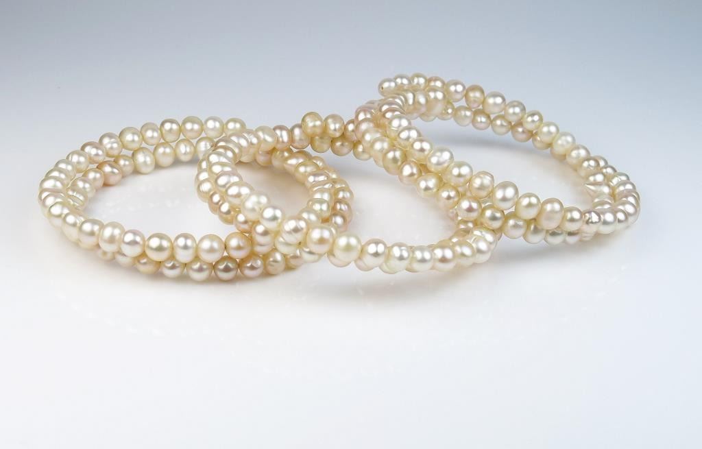 18CAI-62 BANGLE BRACELETNice lot of three Freshwater Pearl bangle bracelets of a peach cream color combination. Estimates $100- $200Nice lot of three Freshwater Pearl bangle bracelets of a peach cream color combination. Estimates $100- $200