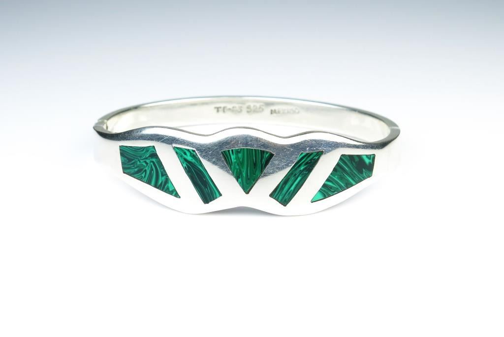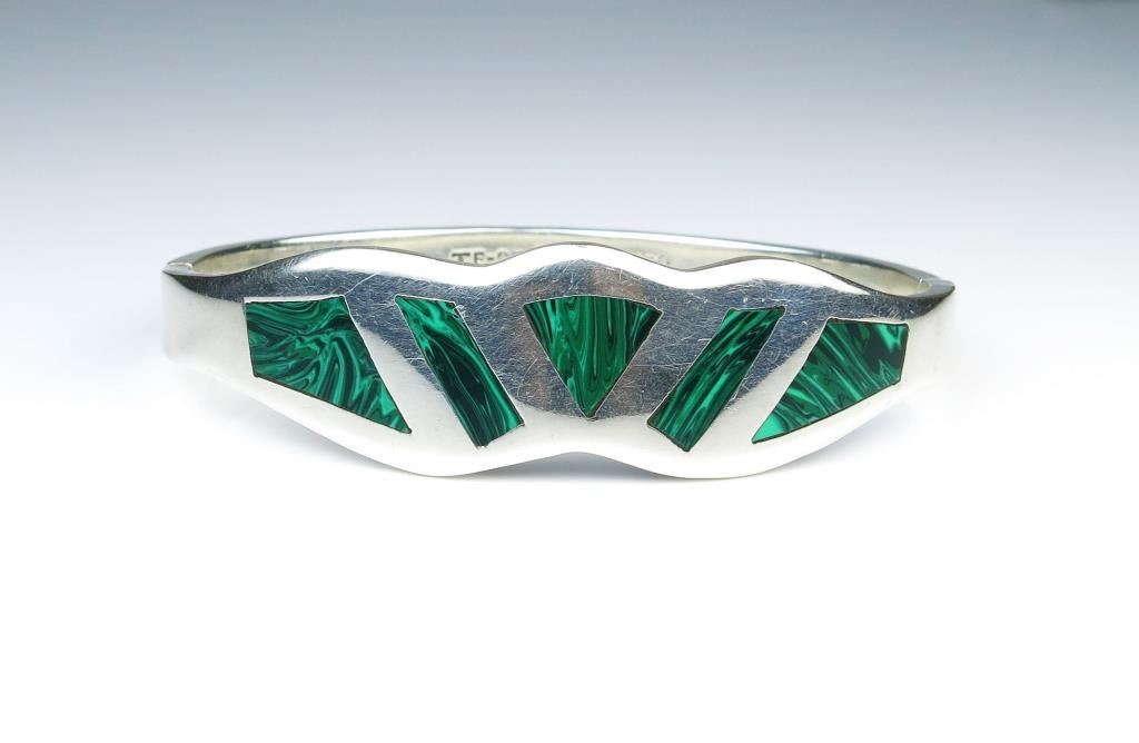 18CAI-71 MALACHITE STONE BANGLENice bangle featuring Malachite inlay stones  set in Sterling silver.