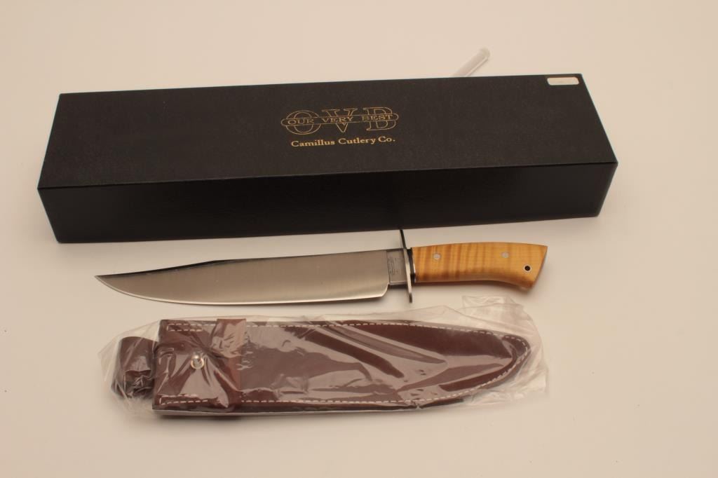 18CD-3 2002 CAMILLUS2002 Camillus “Our Very Best” knife with clip point blade and tiger maple grip. Jerry Fisk signed and 2003 dated. Measures 16 ½” overall with a 11 ¼” blade. Est.: $200-$4002002 Camillus “Our Very Best” knife with clip point blade and tiger maple grip. Jerry Fisk signed and 2003 dated. Measures 16 ½” overall with a 11 ¼” blade. Est.: $200-$400