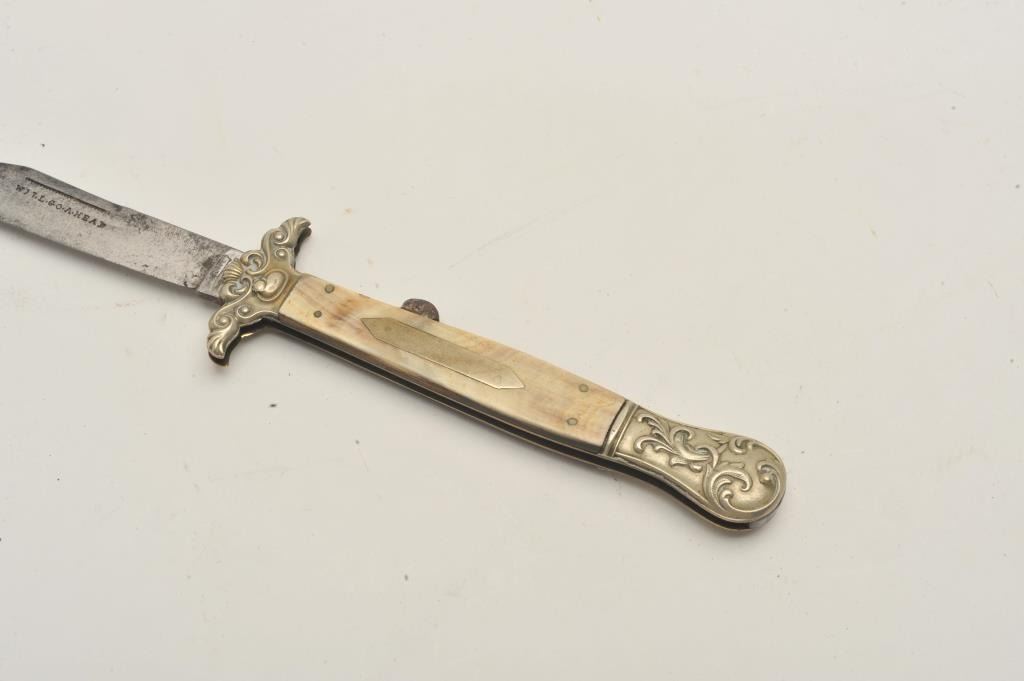 18CF-10 FOLDINGEnglish Mid-19th century folding lock blade  knife marked “Elward, Barnes, & Co” with