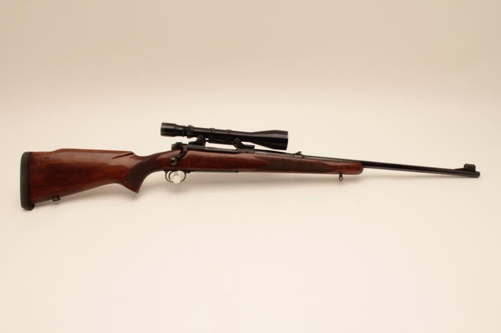 Winchester Model 70 Pre-64 bolt action sporting rifle in .30-06 caliber, S/N 421487. Old style Baush & Lomb scope and mount. Sling swivels and oversize recoil pad added. Very good used condition. Minor stock marksand scratches. 90%-95% original blue. Good action and bright bore. (C& R) Est.: $500-$1000