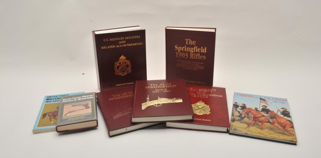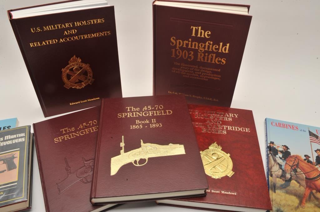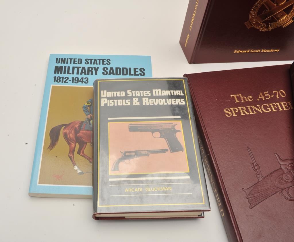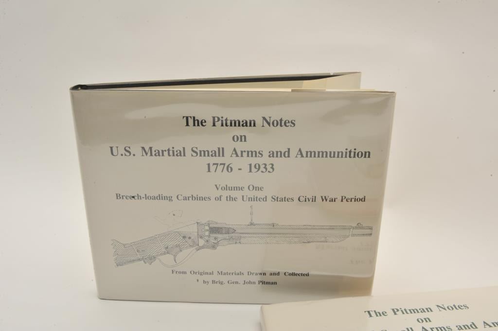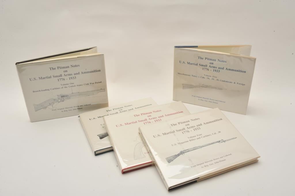 18EMY-7 LOT OF U.S. MARTIAL GUN BOOKSLot of approximately 13 reference books on U.S. Martial guns and accessories including 5 volume set of The Pitman Notes on U.S. Martial Small Arms and Ammunition 1776-1933 by Brig. Gen. John Pitman, U.S. MilitaryHolster and Related Accoutrements by Meadows, The Springfield 1903 Rifles by Brophy, The .45-70 Springfield, Volumes I and II, by Frasca, etc. Est.: $175-$350.Lot of approximately 13 reference books on U.S. Martial guns and accessories including 5 volume set of The Pitman Notes on U.S. Martial Small Arms and Ammunition 1776-1933 by Brig. Gen. John Pitman, U.S. MilitaryHolster and Related Accoutrements by Meadows, The Springfield 1903 Rifles by Brophy, The .45-70 Springfield, Volumes I and II, by Frasca, etc. Est.: $175-$350.