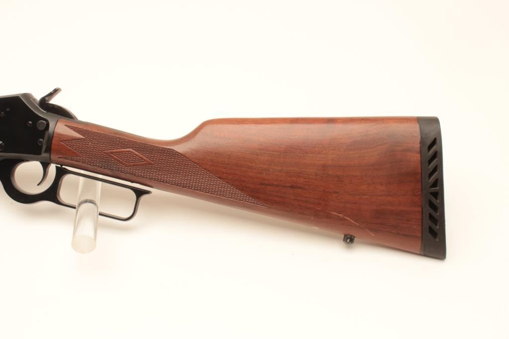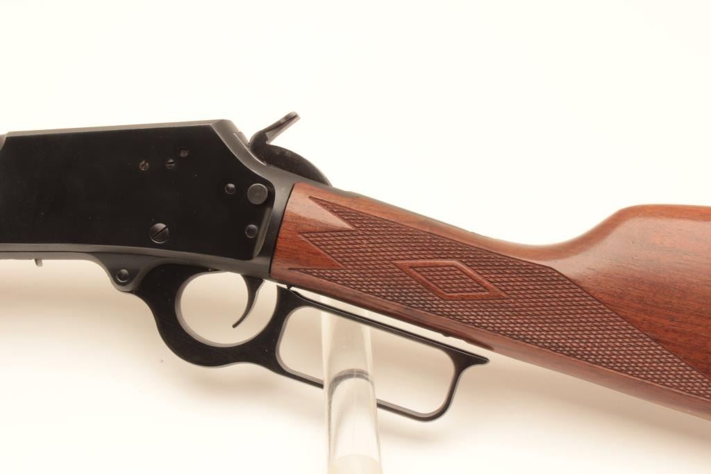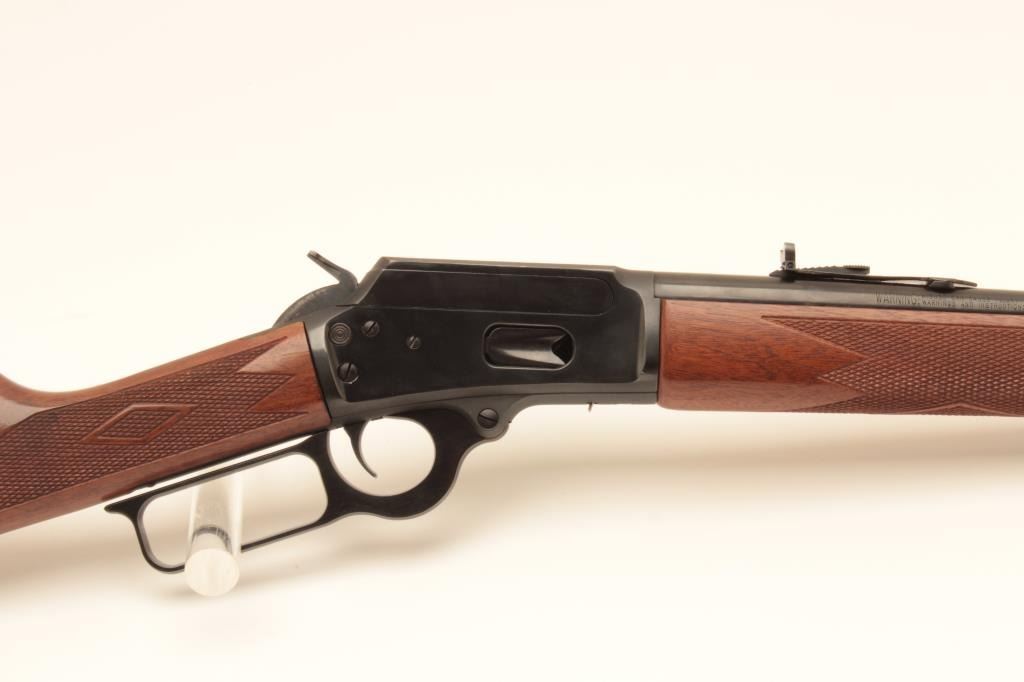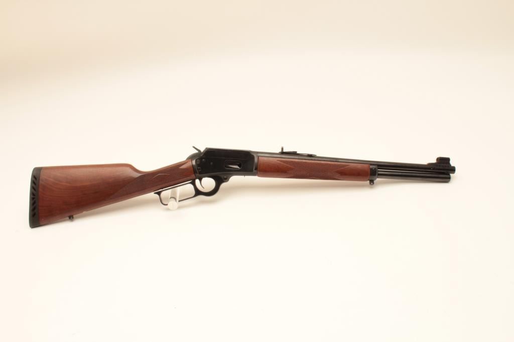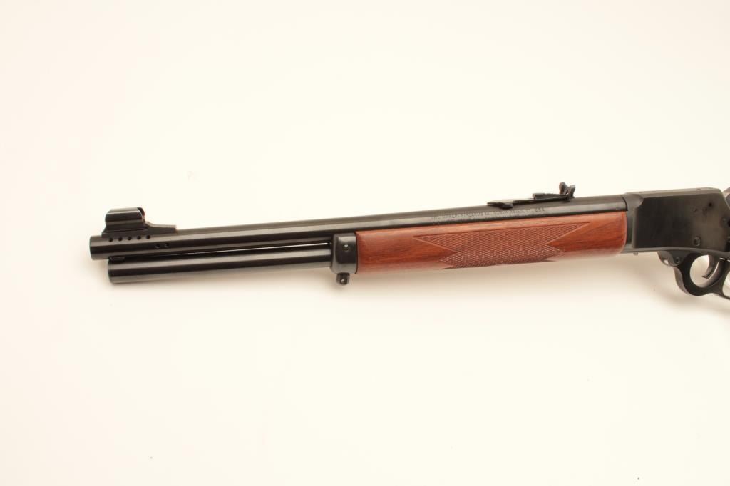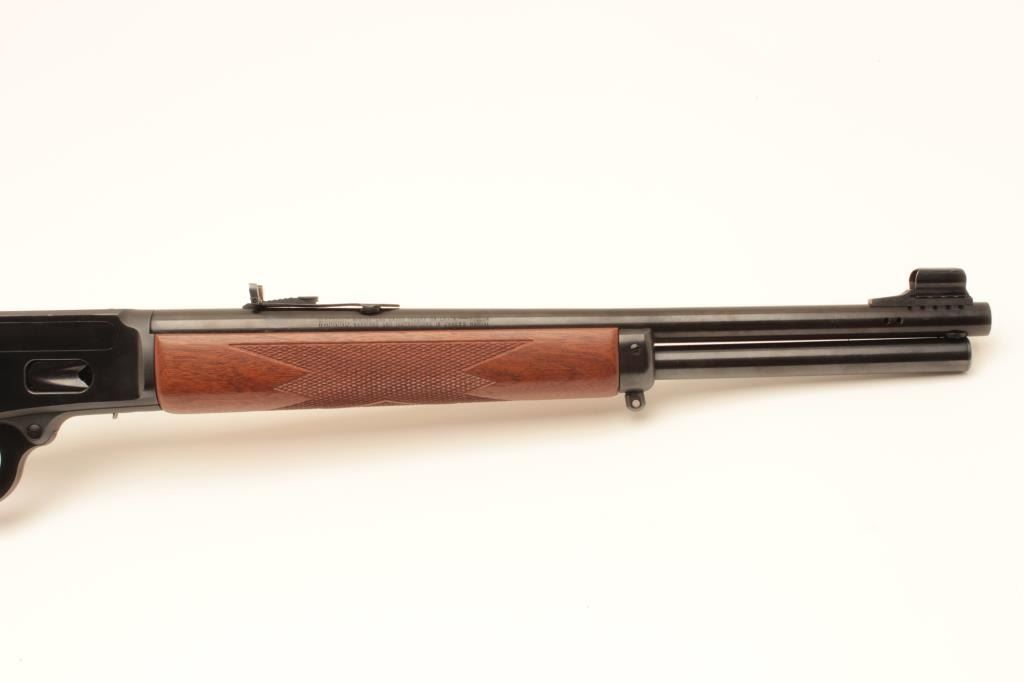Marlin Model 1894P lever action carbine, .44 Rem. Magnum or .44 Special caliber, ported barrel, blued finish, checkered wood stocks, S/N 01020592, in overall fine condition with majority of original blued finish to metalsurfaces, fine bore, crisp action, sharp markings and fine wood stocks. (Modern). Est.: $350-$700.