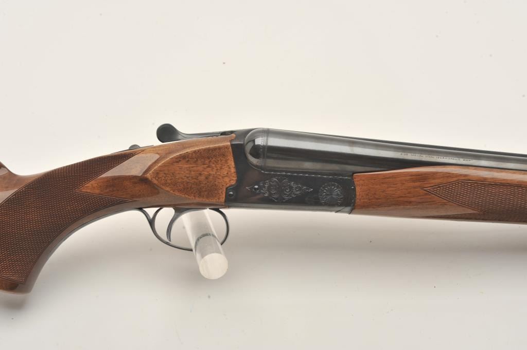 Browning SxS shotgun, 12 gauge, 26” barrels, blued finish, checkered wood stocks, single trigger, S/N 12415A37, in overall fine condition with fine bore, action, markings and wood stocks. (Modern). Est.:$600-$1,200.