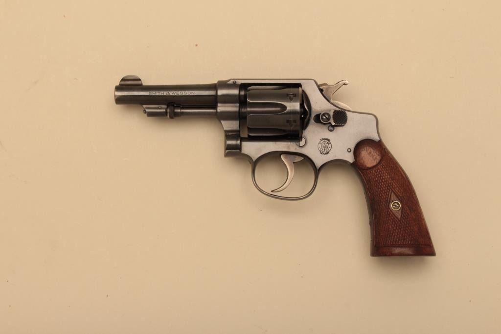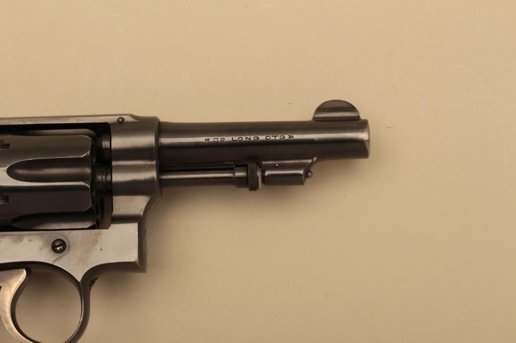 Smith & Wesson Hand Ejector DA revolver, .32 Long caliber, 3.25” barrel, checkered wood grips, S/N 313198; overall fine condition with majority of original finish, slight muzzle wear, fine bore, crisp action, sharpmarkings and fine grips. (C&R). Est.: $300-$600.