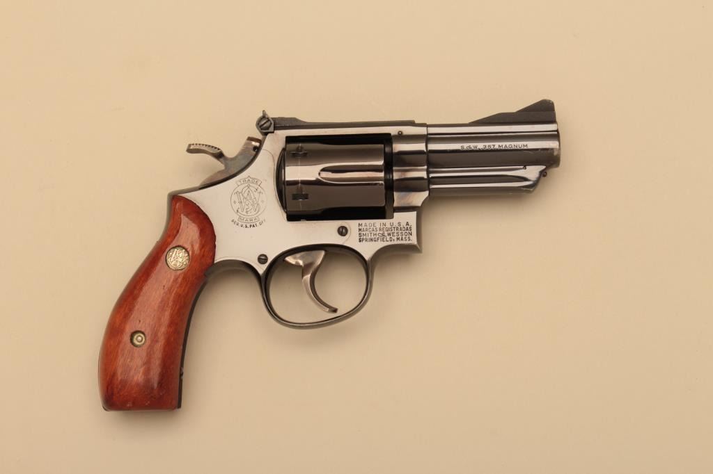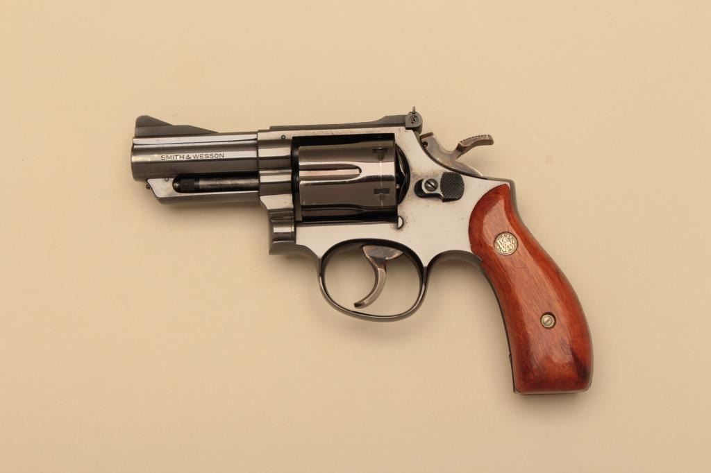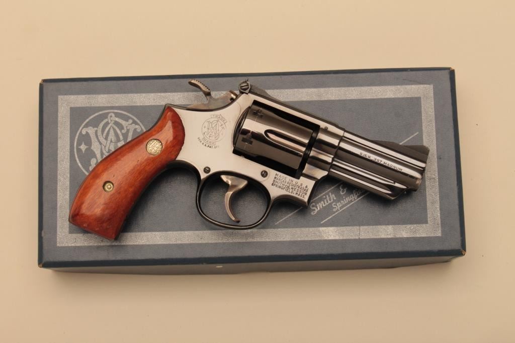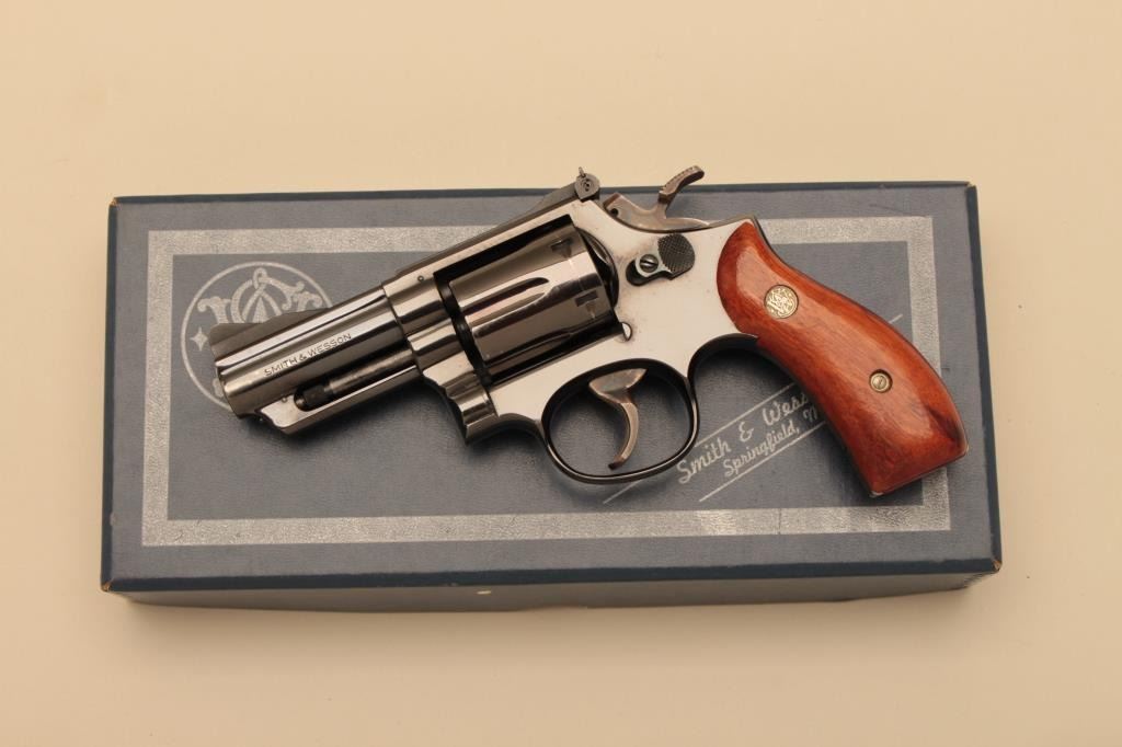 Smith & Wesson Model 19-2 DA revolver, .357 Magnum caliber, 3” barrel, blued finish, smooth wood medallion grips, S/N K622757; overall fine condition with some muzzle wear, fine bore, action, markings and grips;accompanied by a two piece factory cardboard box. (C&R). Est.: $500-$1,000.