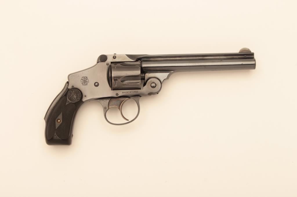 Smith & Wesson New Departure Model DA revolver, .38 caliber, 5” barrel, blued finish, checkered hard rubber grips, S/N 255090; overall fine condition showing majority of original finish except loss toarea at rear of left side barrel assembly near release, fine bore, crisp action, sharp markings and fine grips. (C&R). Est.: $500-$1,000.