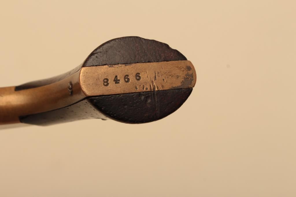 Spur trigger revolver marked “Made for Smith & Wesson by Rollin White Arms Co., Lowell, Mass”, .22 caliber, 3-1/8 barrel, brass frame, rosewood grips, S/N 8466; overall good to very good condition with nice patina tobrass frame, light patina to barrel and cylinder, good markings and grips with an old small chip off the bottom of the left grip. (Antique). Est.: $300-$600.