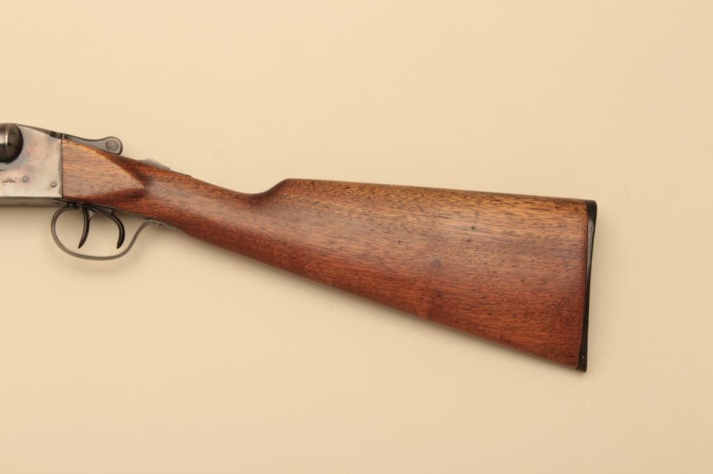 LeFever Nitro Special 16GA SxS barrel field grade shotgun, S/N 355614 with 28” barrels choked improved cylinder in the right and improved modified in the left. Re-blued over bad pitting. The stocks have been refinishedand the bores are good. A bit loose on lock up. Measures 14” to the end of the plate. (C&R) Est.: $150-$300