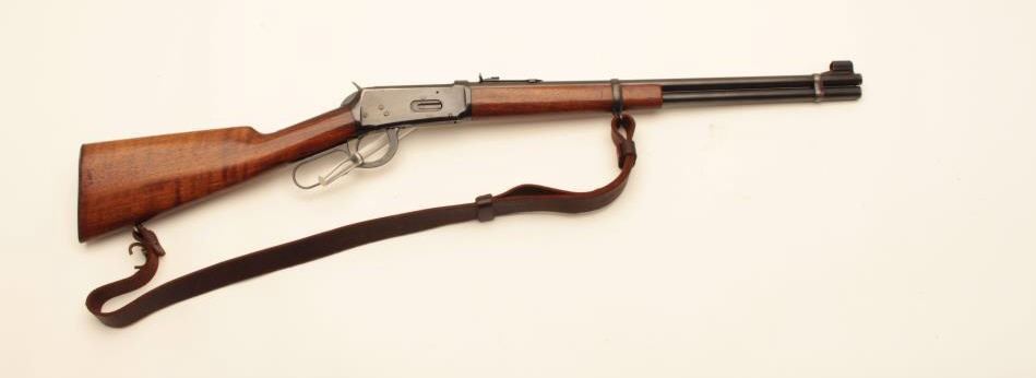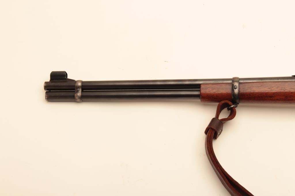 Winchester Model 94 lever action carbine, .30 W.C.F. caliber, 20” barrel, blued finish, wood stocks, leather sling, S/N 1242071, import marked under receiver, also stamped “BCP/92” on bottom tang. Consignor statesBCP is for Canadian British Columbia Police. The gun is in overall very good + condition showing majority of blued finish, very good + bore, crisp action and markings and very good + wood stocks. Would be interesting tosend for a factory letter. (C&R). Est.: $600-$1,200.