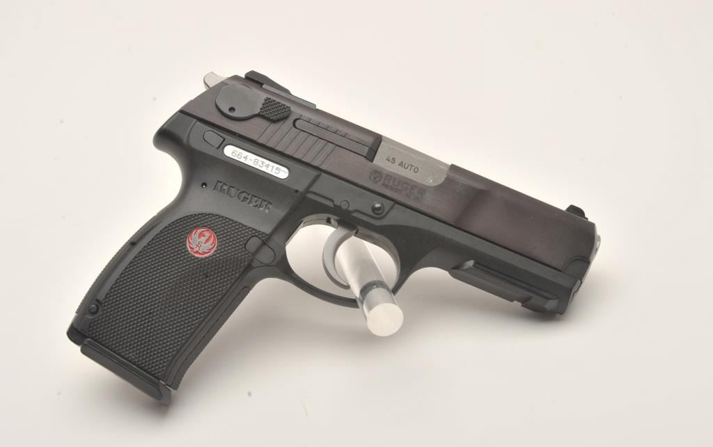 Ruger Model P345 semi-automatic pistol, .45 auto caliber, 4.25” barrel, blued finish, black integrated frame/grips, in factory hard case with one extra magazine and instructions manual; like new condition. (Modern/PPT). Est.: $300-$600.