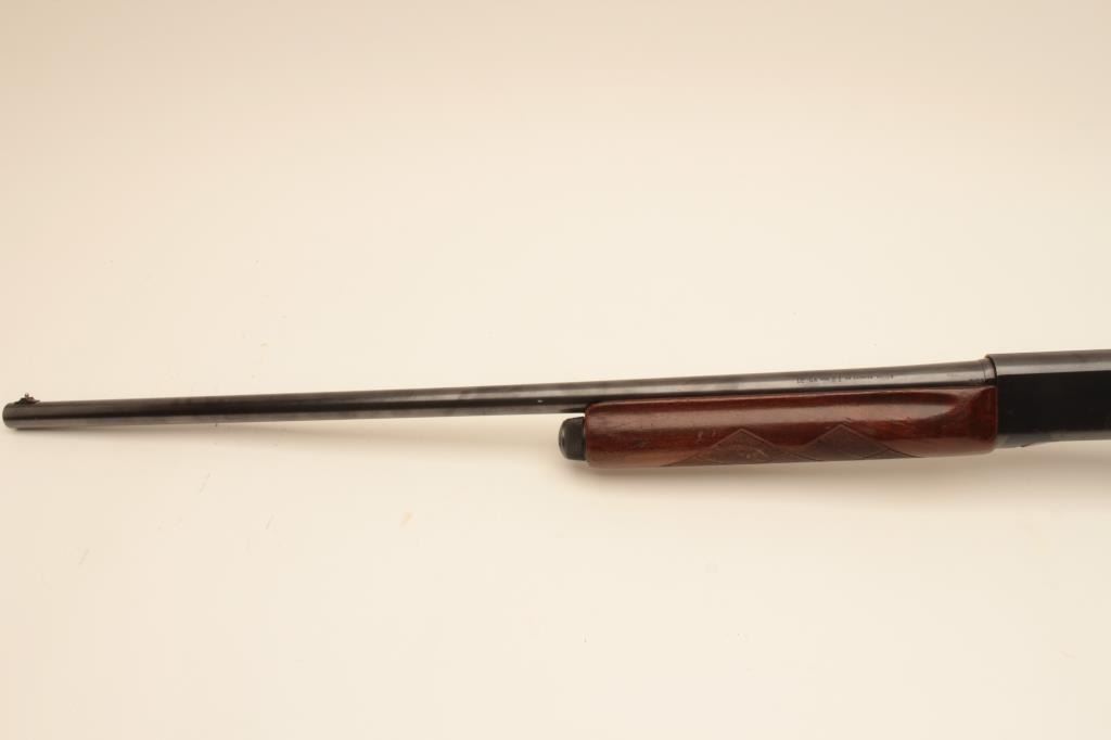 Remington Model 48 Sportsman 12GA Semi-Auto shotgun with a 30” barrel, choked improved cylinder (Marked full-Bored out?). Good to very good with 75%-85% original blue. Very good wood with normal use and slightimperfections. Factory dimensions and length. Measures 14” to the end of the butt plate. Excellent bore and tight. (Modern) Est.: $175-$350