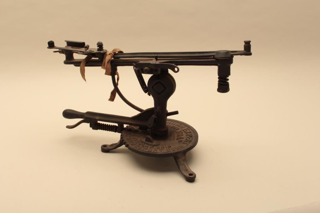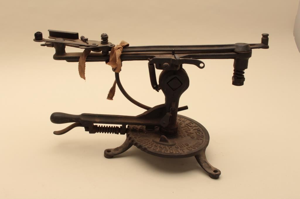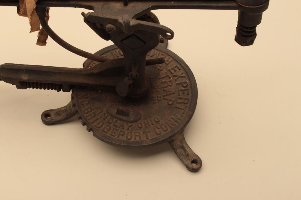 “Remington Arms Co. Bridgeport, Conn” marked trap thrower. Expert model. Measures 10” x 21”. As found and complete. Dirty and needs cleaning. Cast iron base (Early). Est.: $150-$300