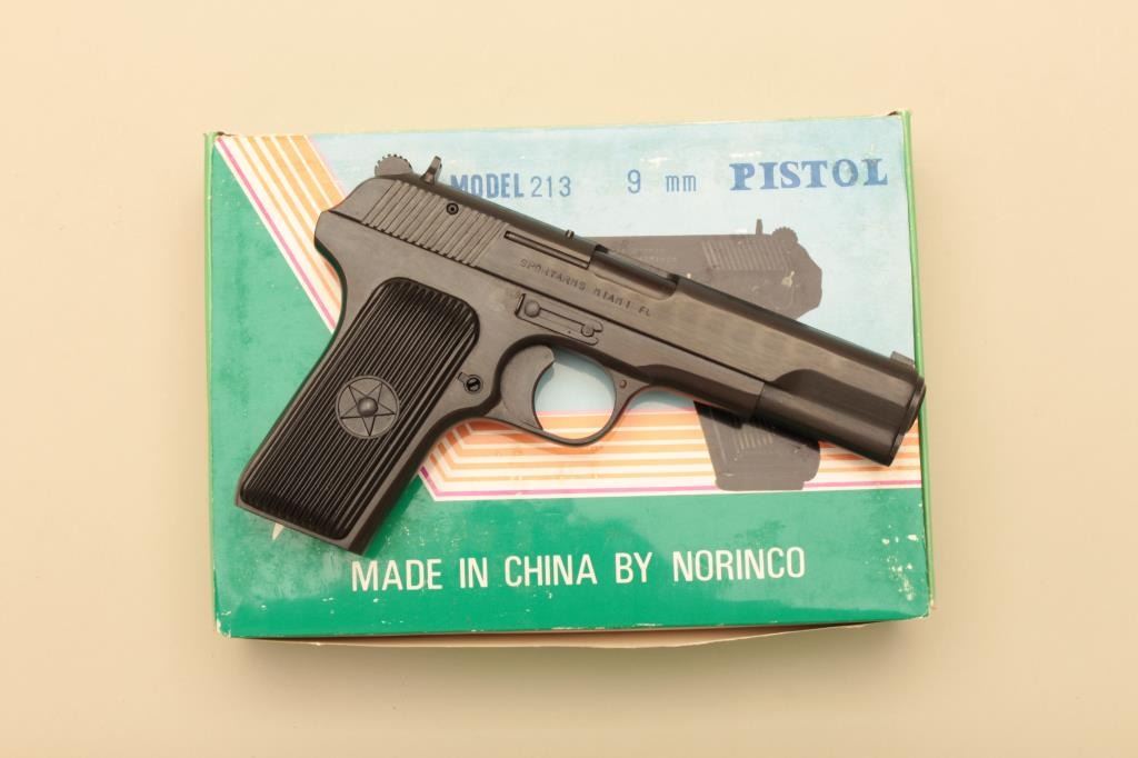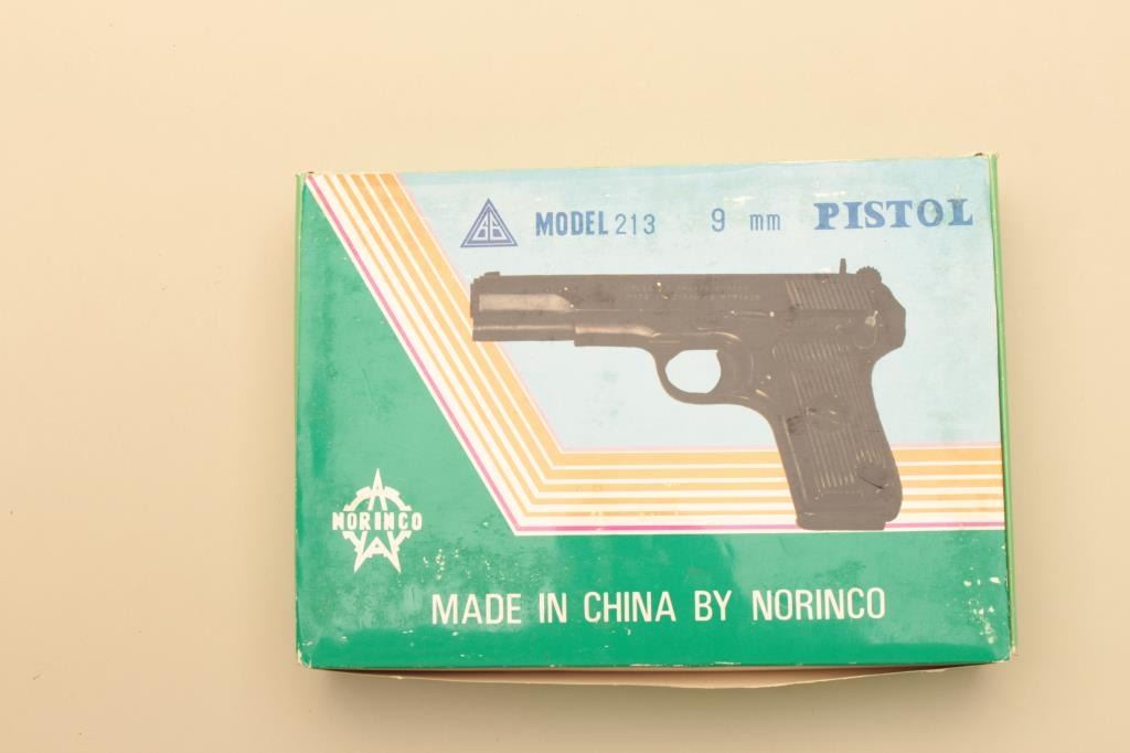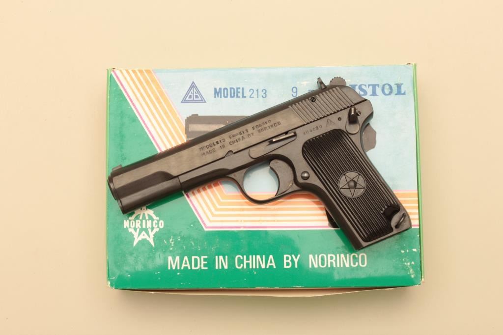 Norinco Model 213, #204620, 9mm, 4 1/2" barrel, blued finish, plastic grips. Pistol is in as new condition, mint bore, crisp action, with original box, manual one mag and accessories. (C&R/PPT) Est. $200-400