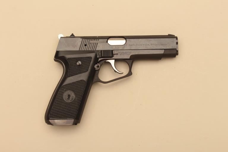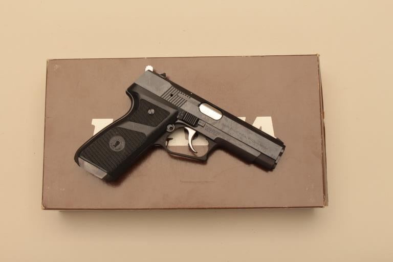 LLama Omni semi automatic pistol, #PA0862, 9mm, 4 1/4" barrel, blued finish, checkered plastic logo grips. Pistol is in like new condition. Bore and action are excellent. One hi-cap mag (not transferrable to CA orother prohibited states or areas). (Modern/PPT) Est. $350-700