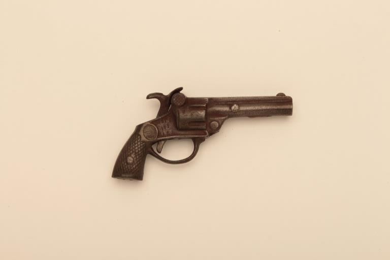 Lot of antique and vintage toy guns. 3 cast iron (Plunk, hero, Colt) Pat 1917. 11 die cast. 2 die cast in original boxes. Est.: $100-$200
