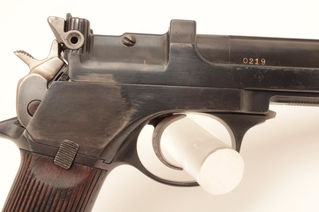 Mannlicher Model 1905 semi-automatic pistol, 7.65 mm caliber, serial #02192841. The pistol is in very good overall condition with a 6 ¼” barrel. The pistol retains the majority of an old quality re-finish with only handling marks and some thinning of finish at the rear of the frame noted. The frame is marked, “WAFFENFABRIK STEYR” at the rear of the pistol. The wood grips are in good condition with mars and compressions consistent with carry and use and a lanyard loop at the base. The bore is good, the action functions and markings are sharp. Est.: $500-$1,000. (C+R).