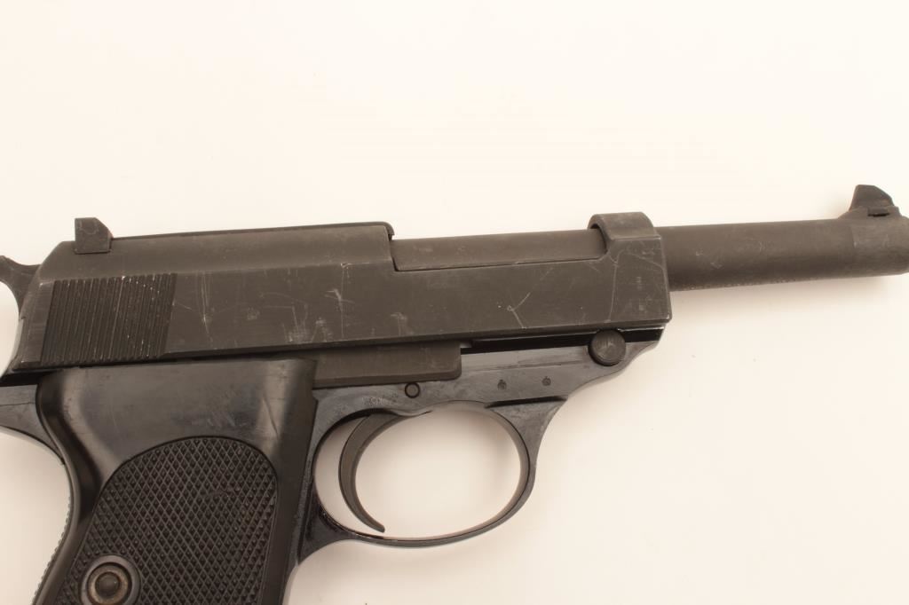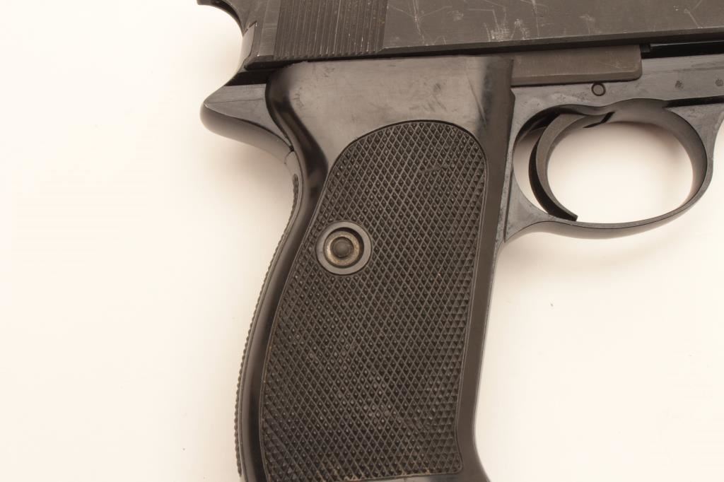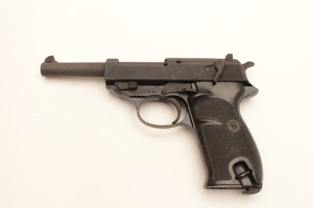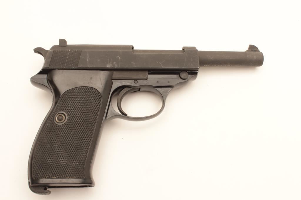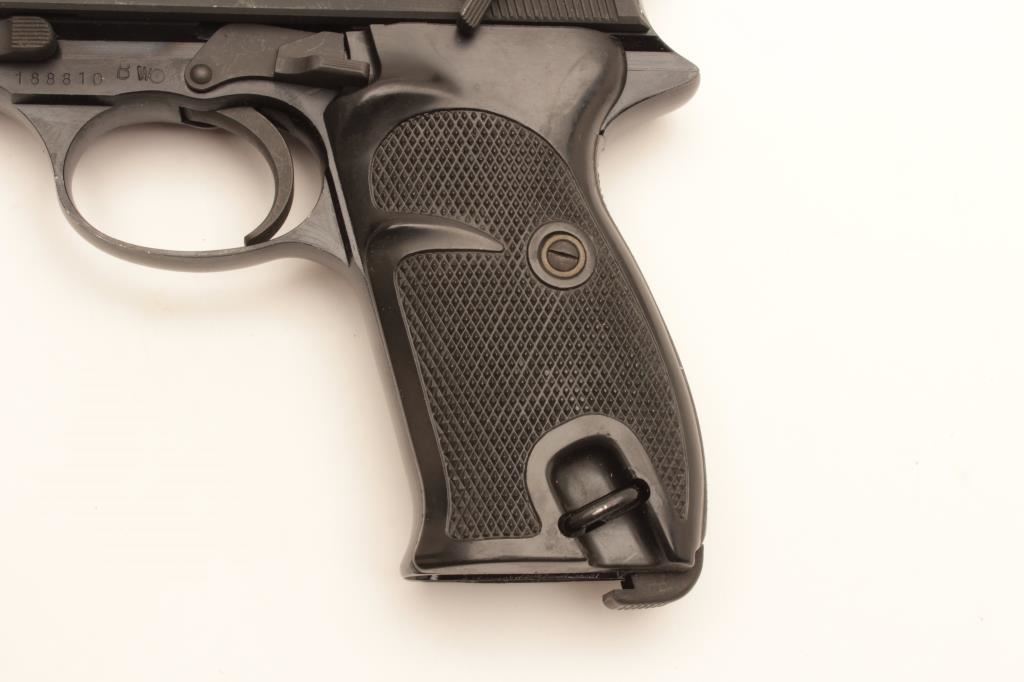 Walther P-38 semi-automatic pistol, 9mm caliber, 5” barrel, mat black finish, import-marked, checkered black grips, S/N 188810; overall good condition with a good bore, crisp action and good grips. (Modern/PPT). Est.: $250-$500.
