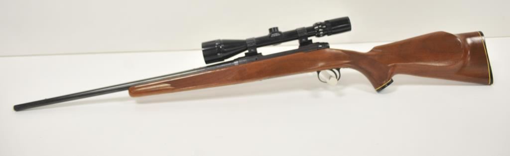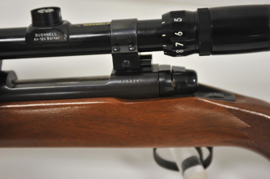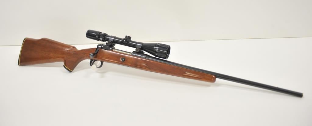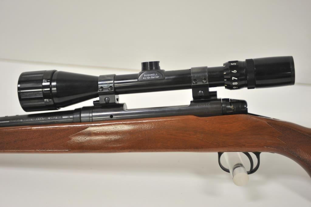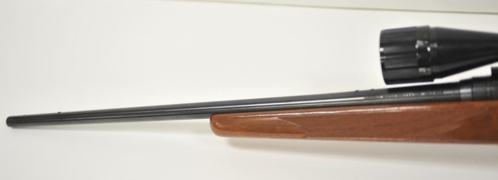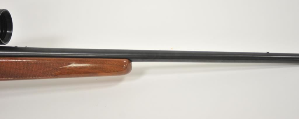 Savage 111 bolt action rifle, #C845544, .243 Win., 22 1/8" barrel, blued finish, checkered walnut stock. Rifle is in near fine condition overall, retaining 96-98% original finish, stock shows minor nicks and scrapes from storage and use. Bore is mirror bright, action is crisp. Mounted with a Bushnell 4x-12x Banner scope. Original box included. (Modern) Est. $250-500
