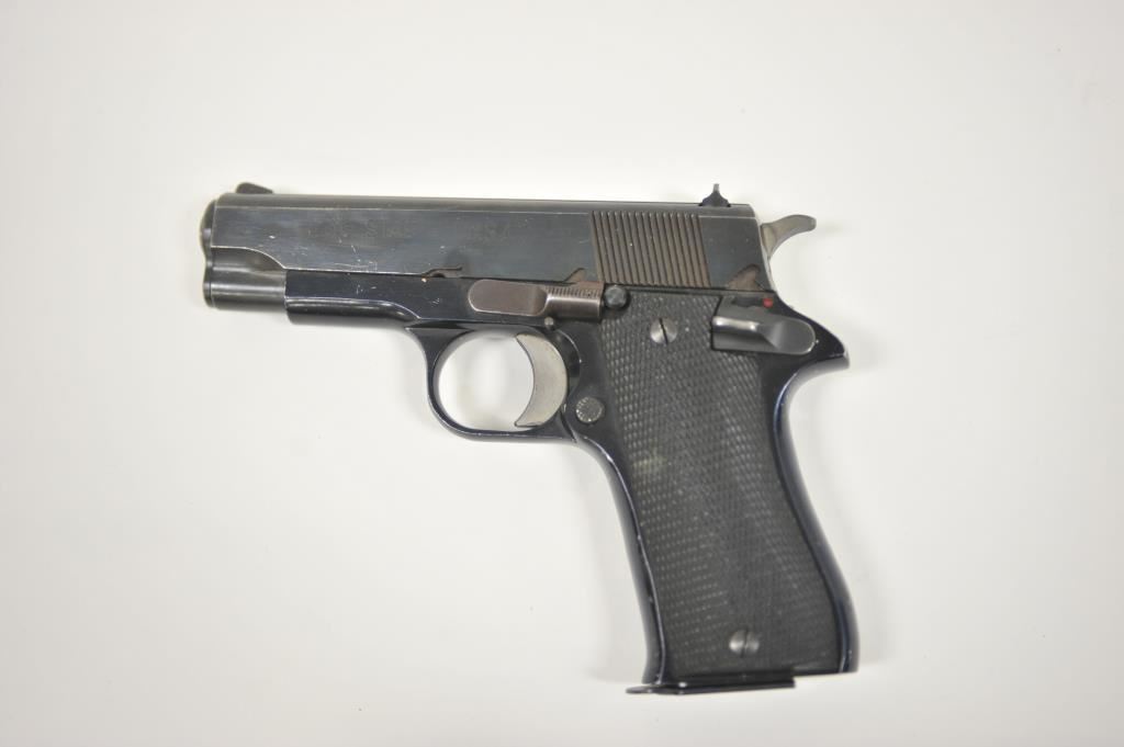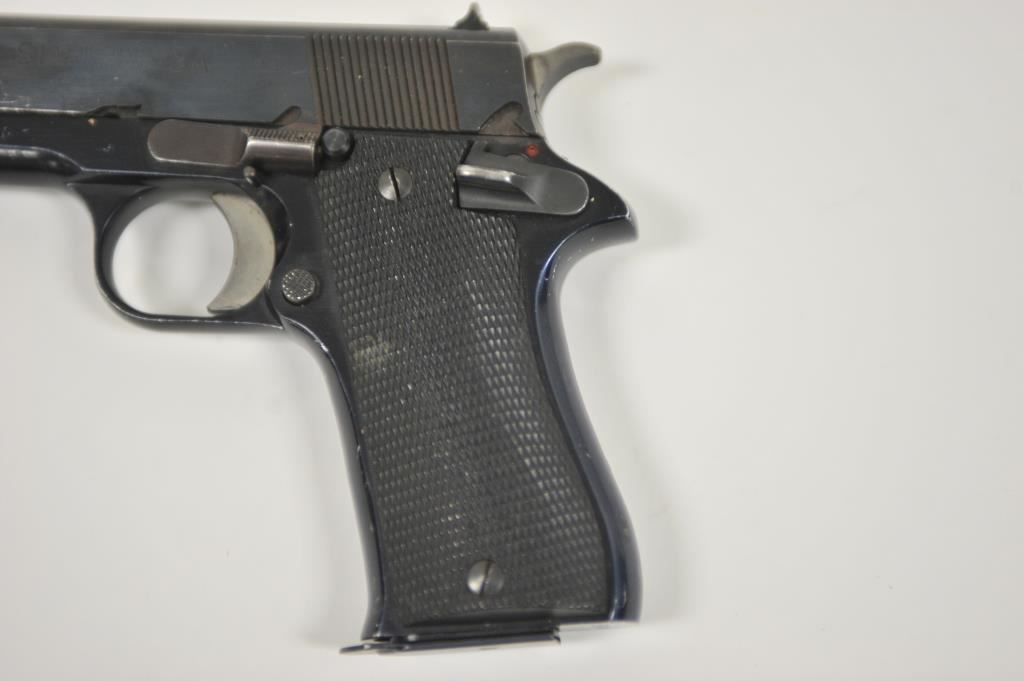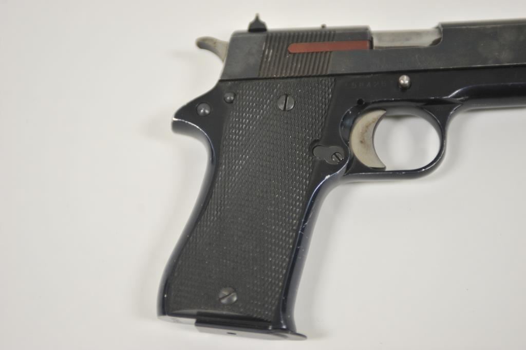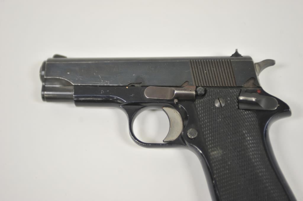 Star Model BKM #1584251, 9mm cal., 3 3/4" barrel, blued finish, fixed sights, checkered grips. Pistol is in very good plus condition overall, showing the majority of it's original finish, the bore is good, the action is good, the grips are very good. One correct mag included. (Modern / PPT) Est, $250-500