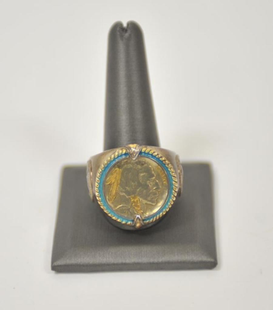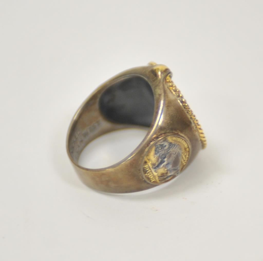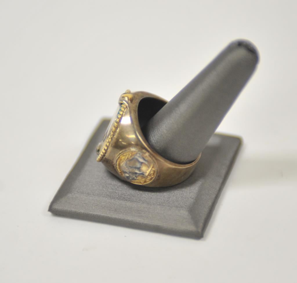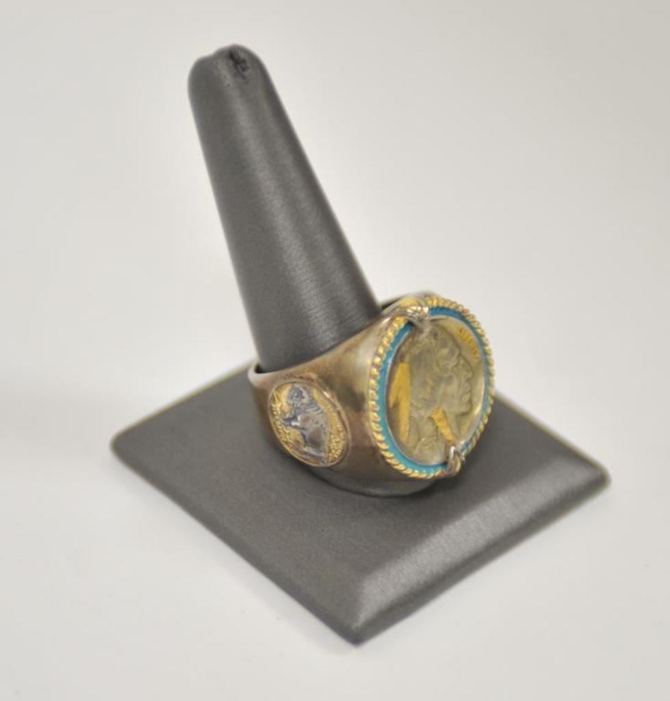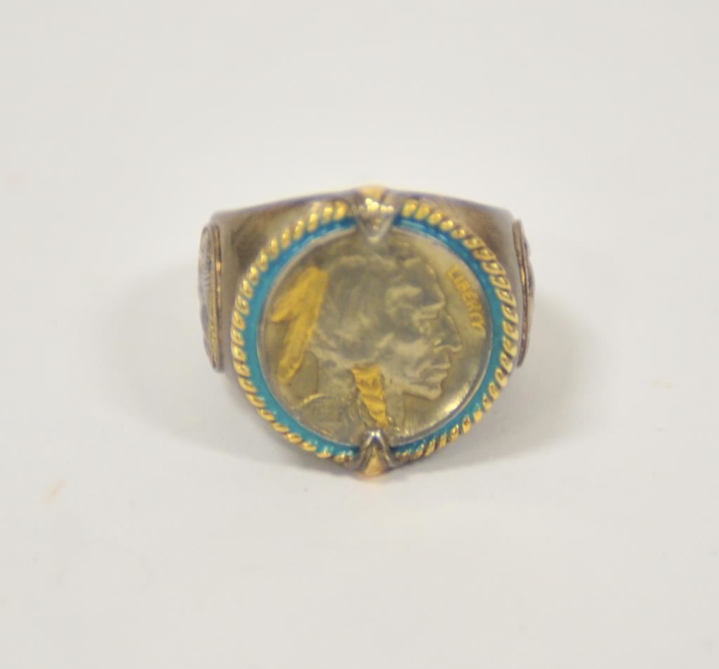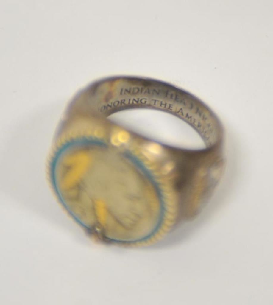 Danbury mint U.S. Army ring with reproduction C.S.A. pocket watch. .925 sterling. Size about 14. And Indian head ring. Est.: $50-$100