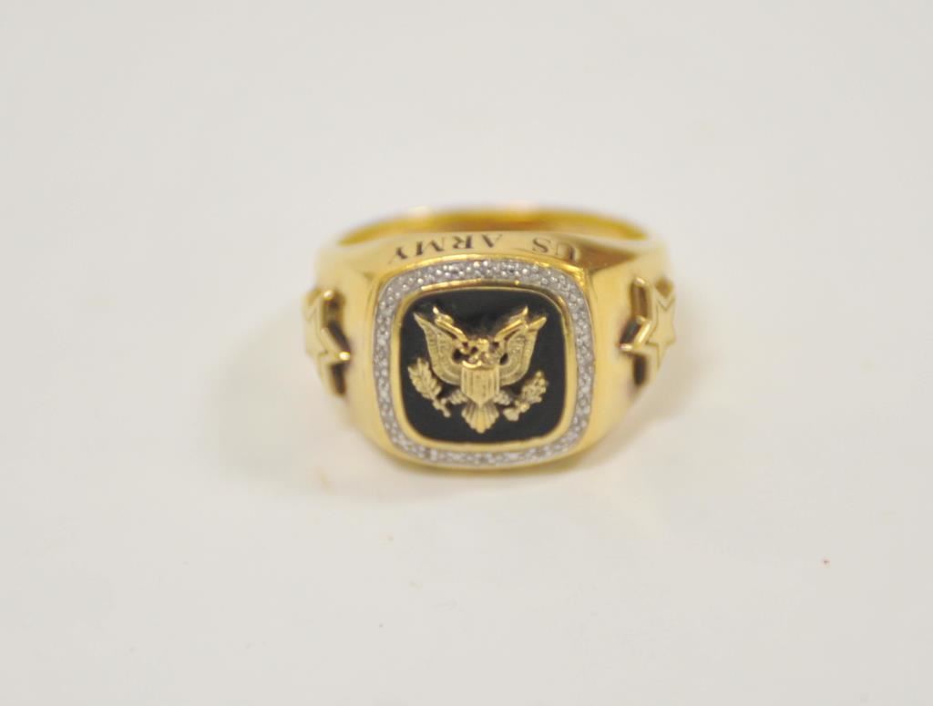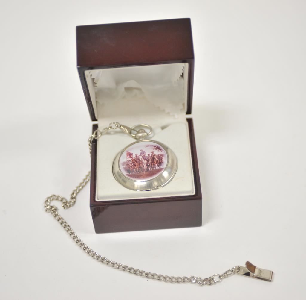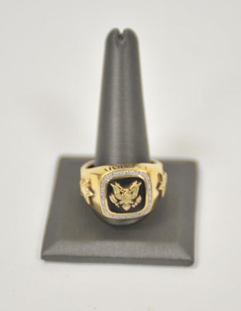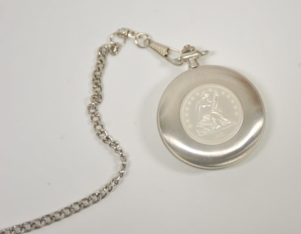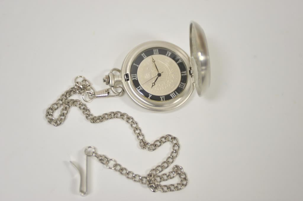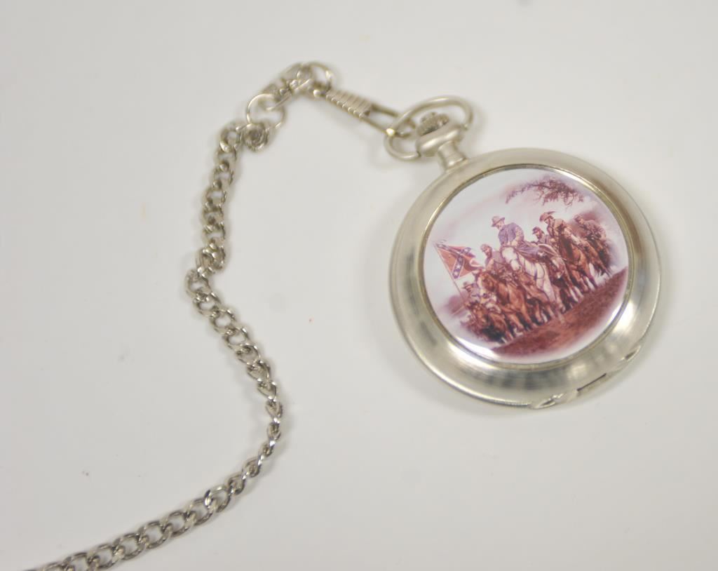 Danbury mint U.S. Army ring with reproduction C.S.A. pocket watch. .925 sterling. Size about 14. And Indian head ring. Est.: $50-$100
