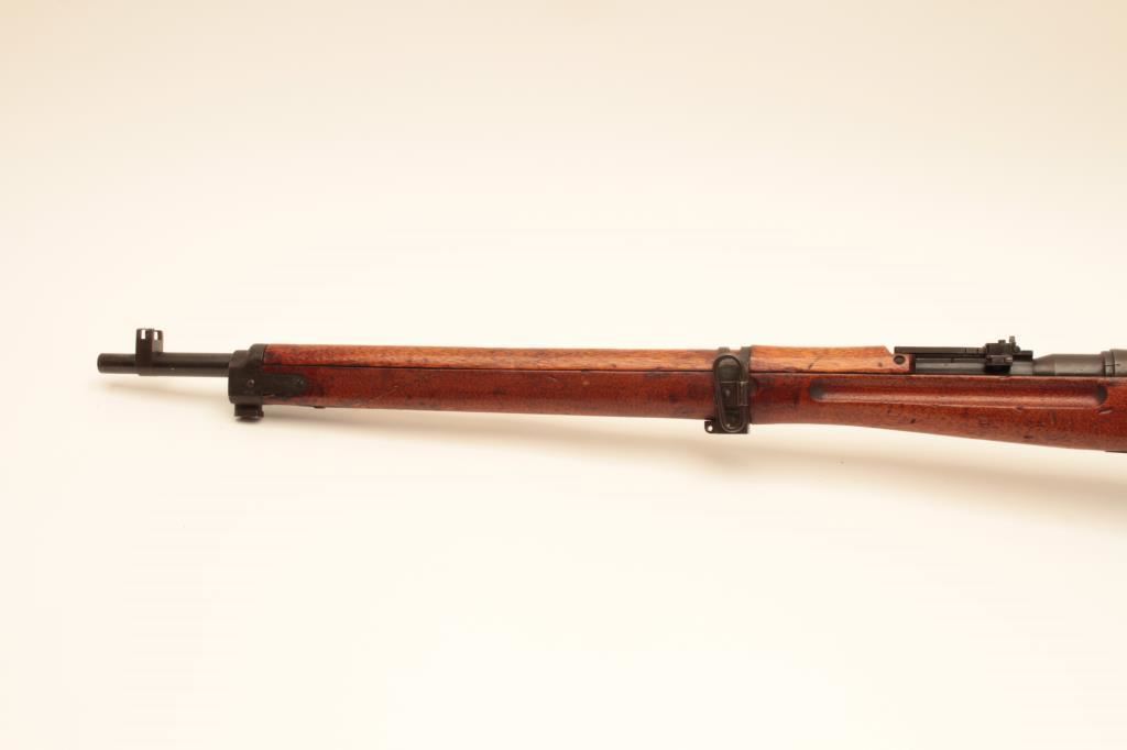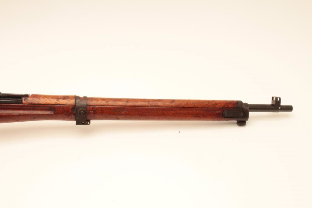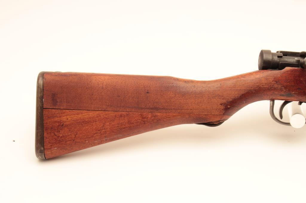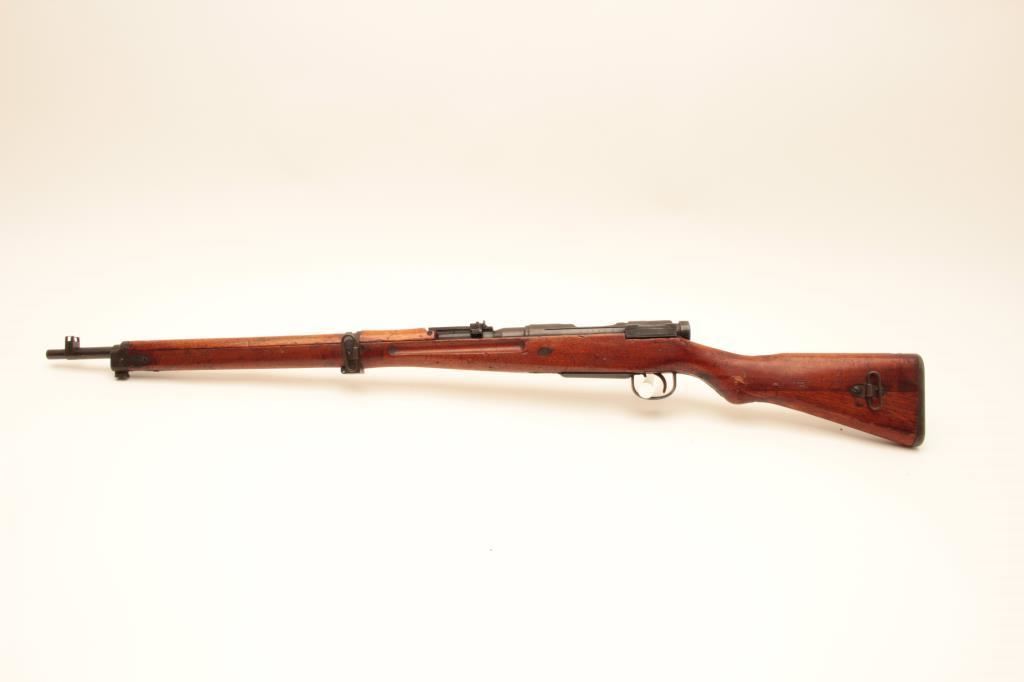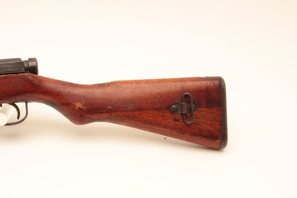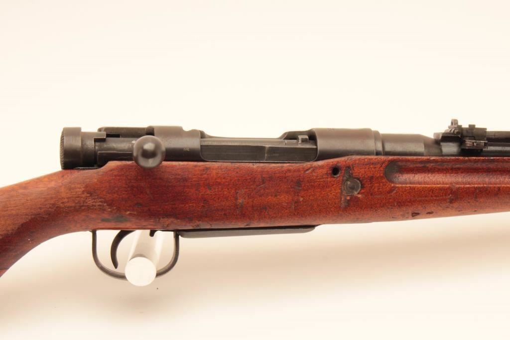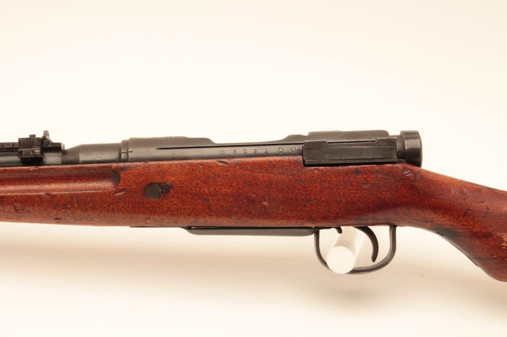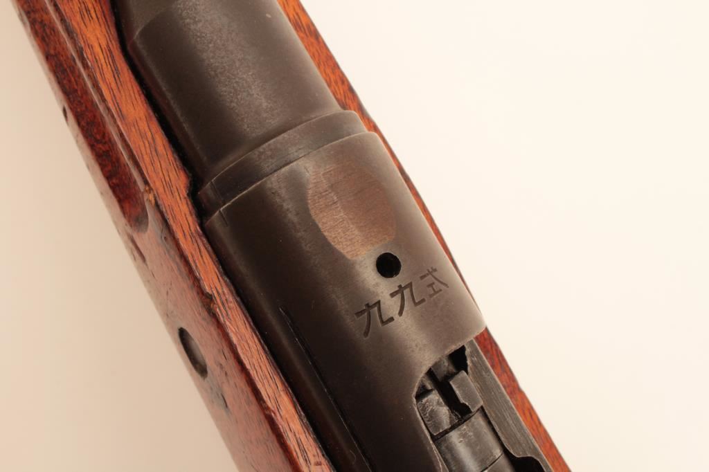 Arisaka 99, #6761, cal. 7.7 Japanese, 26" barrel, blued finish, aircraft sights, original military stock. Rifle is in very good condition overall, showing the majority of it's original finish, ground Mum, bore is very good, action is good, stock is very good with the exception of a loss at the pistol grip on the right side of the tang 3/8" by 1 1/2". (C&R) Est. $200-400
