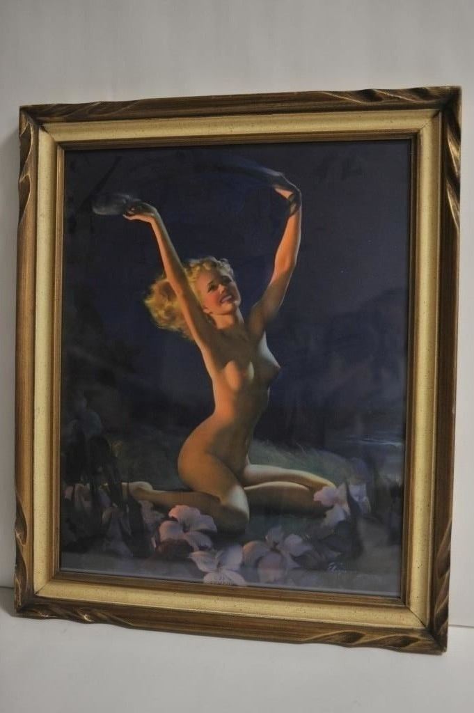 Framed color litho of free spirit young woman by Elvgren entitled “Gay Nymph”; approximately 24” x 20” overall. Est.: $150-$300.