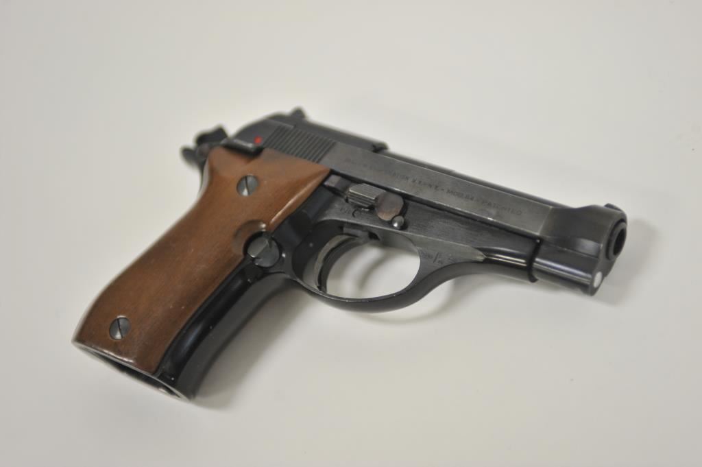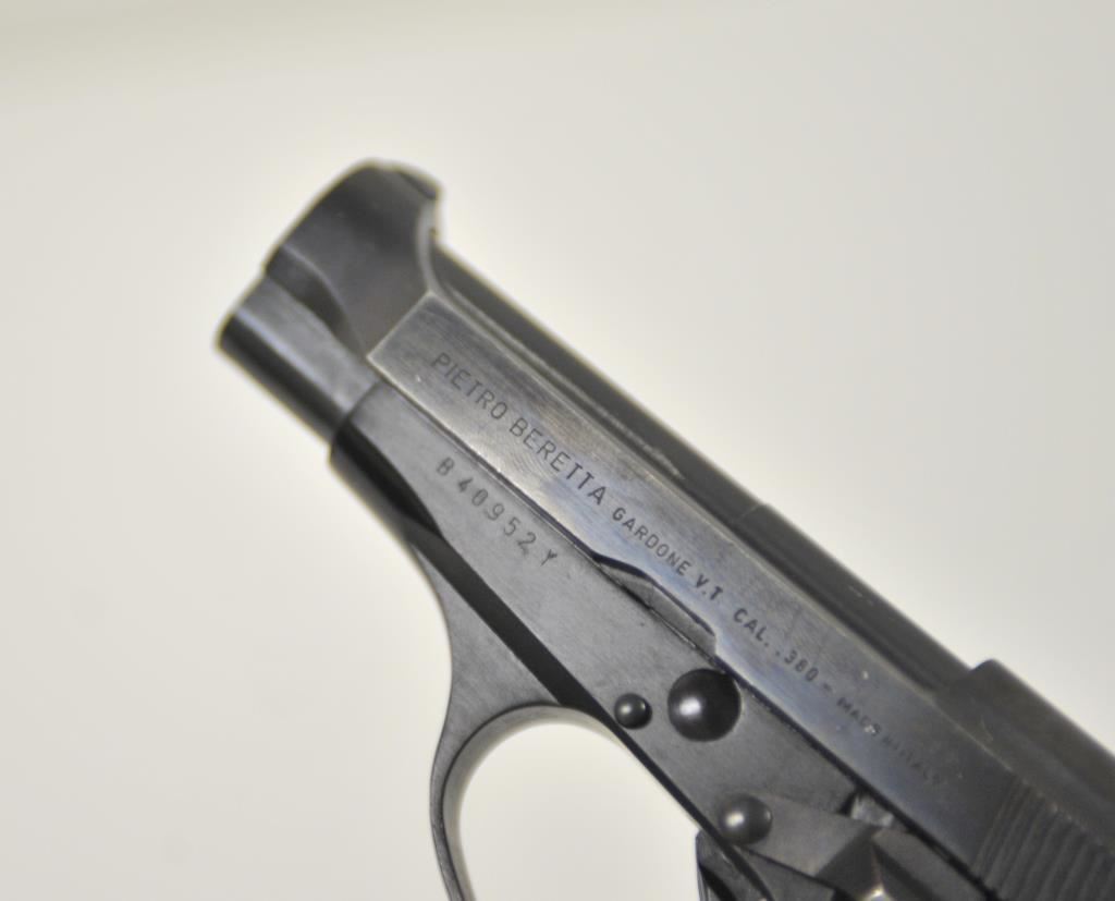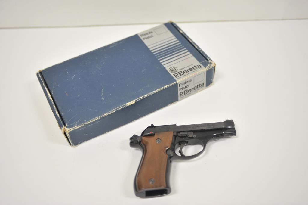 Beretta Model 84 double action semi-auto pistol in .380 caliber, S/N B40952Y. Hi cap mag included (Not deliverable to CA residents unless blocked). Near fine used condition. 96%-99% overall. Minor signs of use and firing. In correct box with instruction. (Modern/PPT) Est.: $350-$700